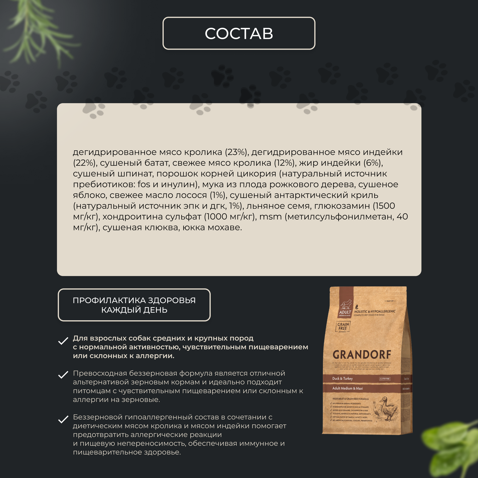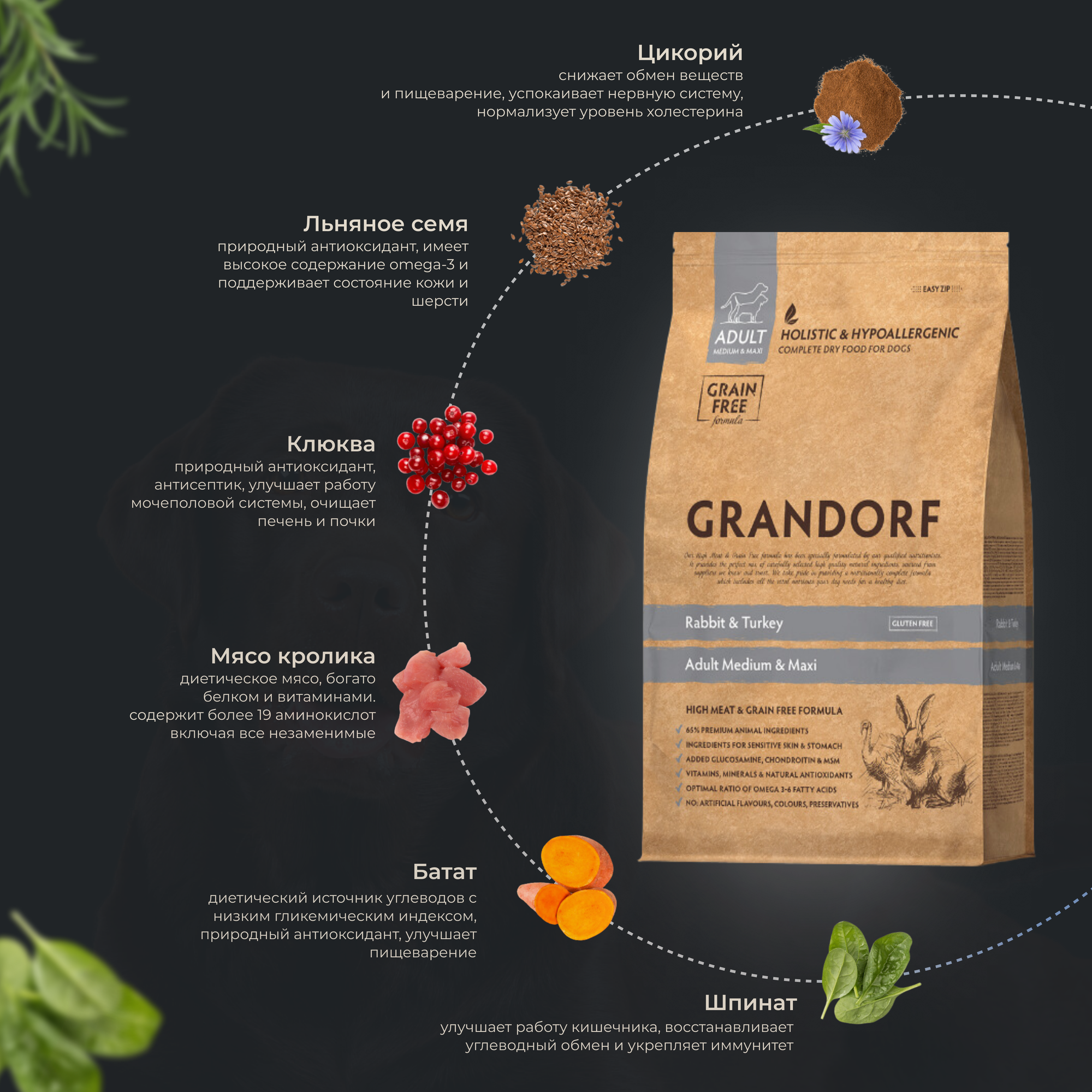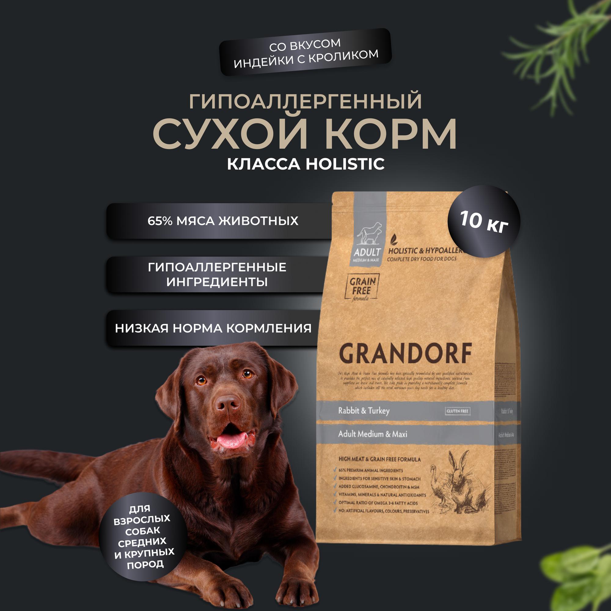 Грандорф для собак средних и крупных пород с кроликом и индейкой 10 кг Беззерновой cухой корм GRANDORF Rabbit & Turkey Adult Medium & Maxi интересное: