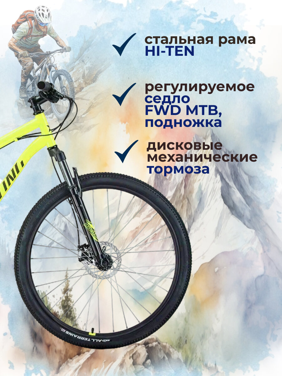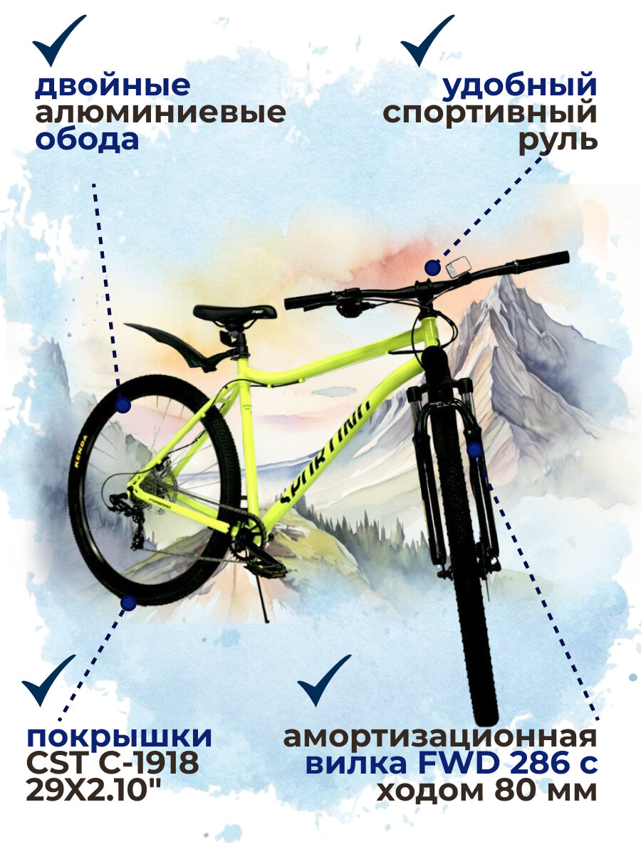 Велосипед горный FORWARD SPORTING 29 2.0 D 2023 рама 19 RB3R98140BGNXBK, ярко-зеленый/черный