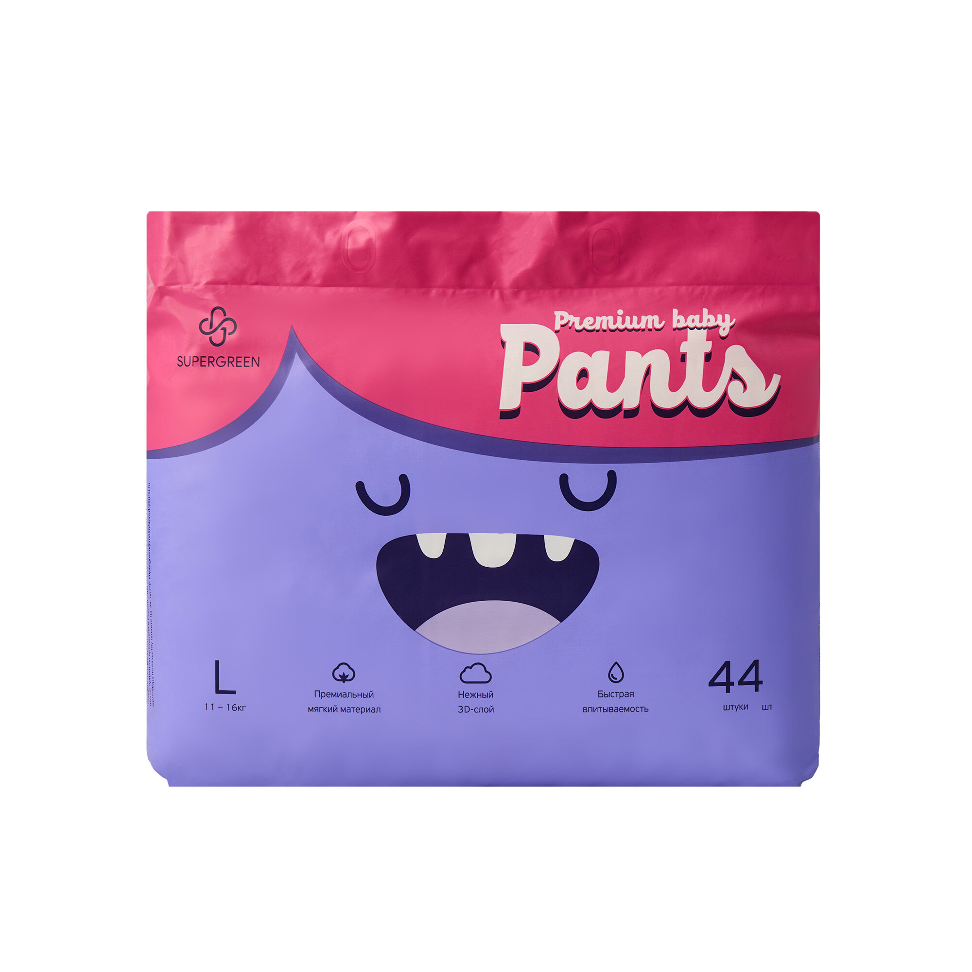 Подгузники-трусики SUPERGREEN Premium baby Pants размер L 11 - 16 кг 44 шт