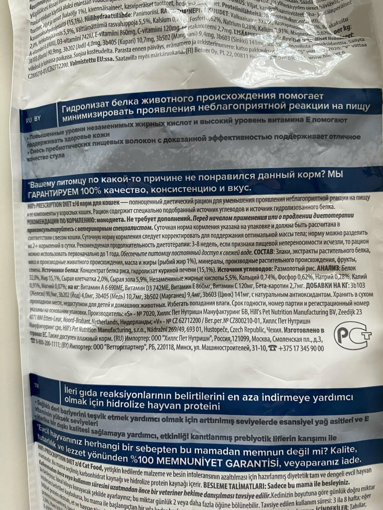 Ниже Вы можете прочитать отзывы на Сухой диетический гипоаллергенный корм для кошек Hill's Prescription Diet z/d Food Sensitivities при пищевой аллергии, 3кг, ознакомится с подробными характеристиками, посмотреть интересные обзоры и фотографии на Сухой диетический гипоаллергенный корм для кошек Hill's Prescription Diet z/d Food Sensitivities при пищевой аллергии, 3кг.