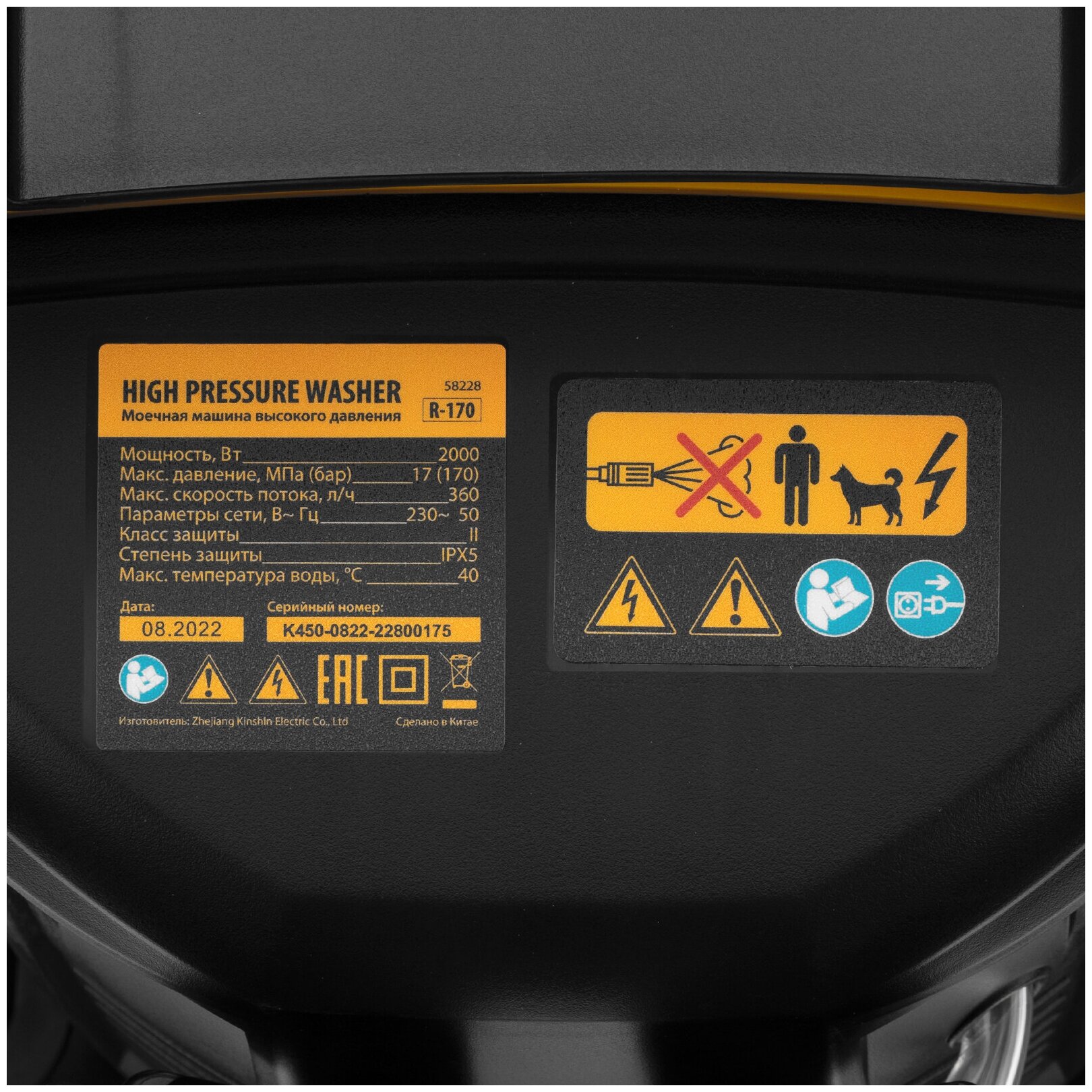 Мойка высокого давления R-170, 2000 Вт, 170 бар, 360 л/ч