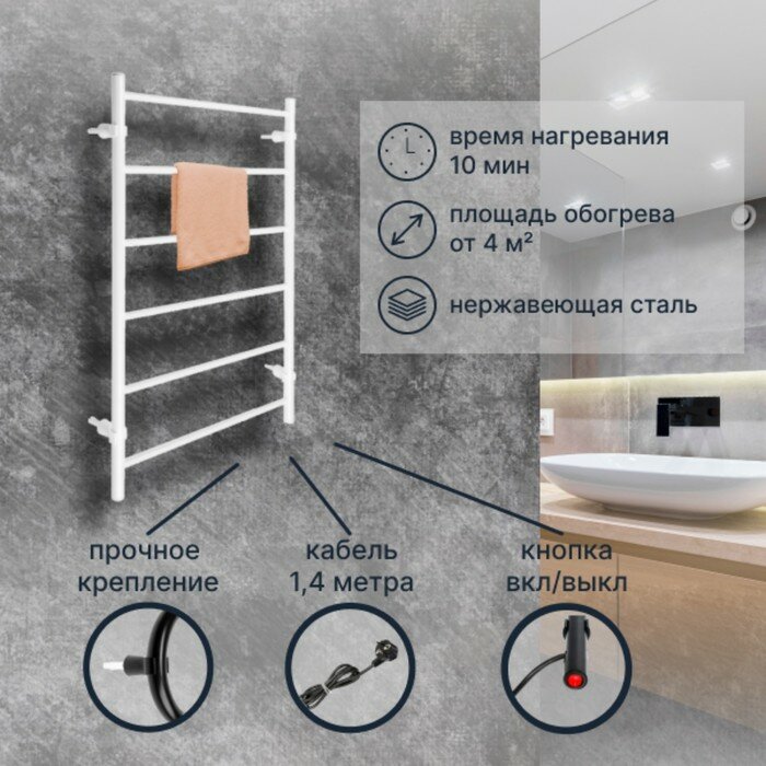Полотенцесушитель электрический "Классика", 500х800 мм, углеродистая сталь, белый