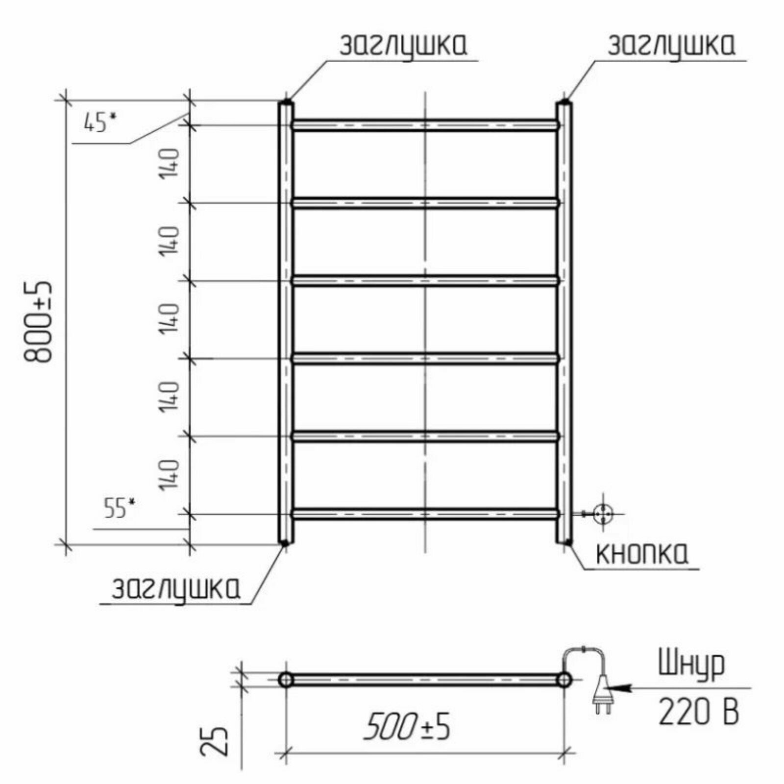 Полотенцесушитель Электрический Тругор Пэк сп 5 П 60х50 черный ВГП