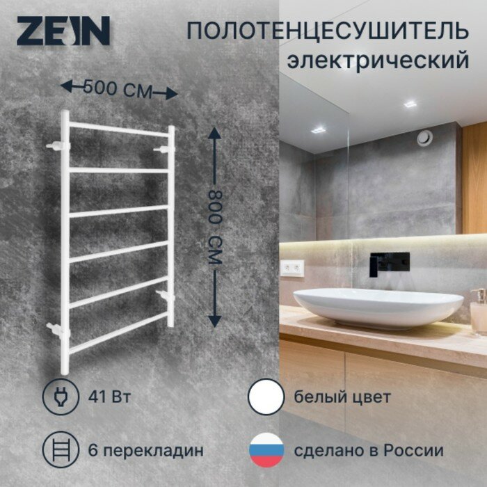 Купить Полотенцесушитель электрический ZEIN PE-04, "Классика", 500х800 мм, 6 перекладин, белый