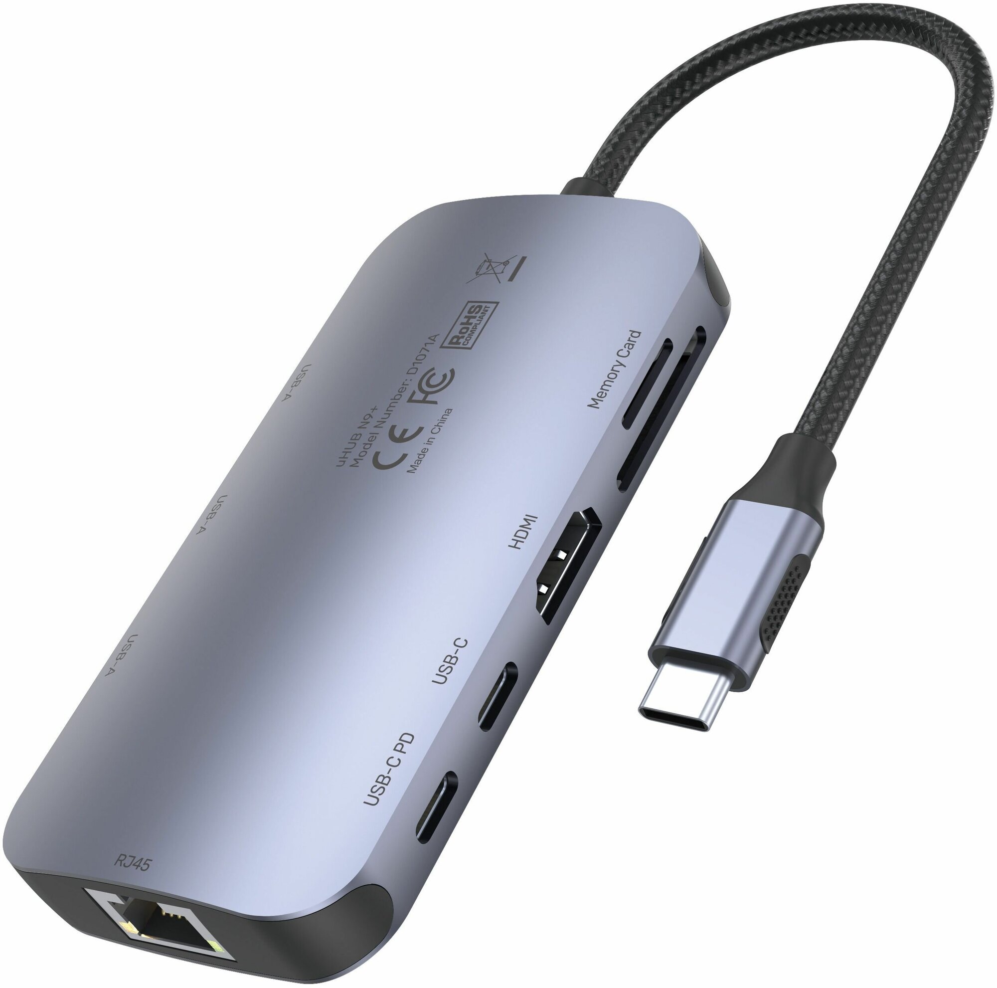 Купить USB-концентратор (хаб) Unitek 9 в 1 (3 x USB A, USB C, 4K HDMI, RJ45, USB C PD, SD/Micro SD) (D1071A)