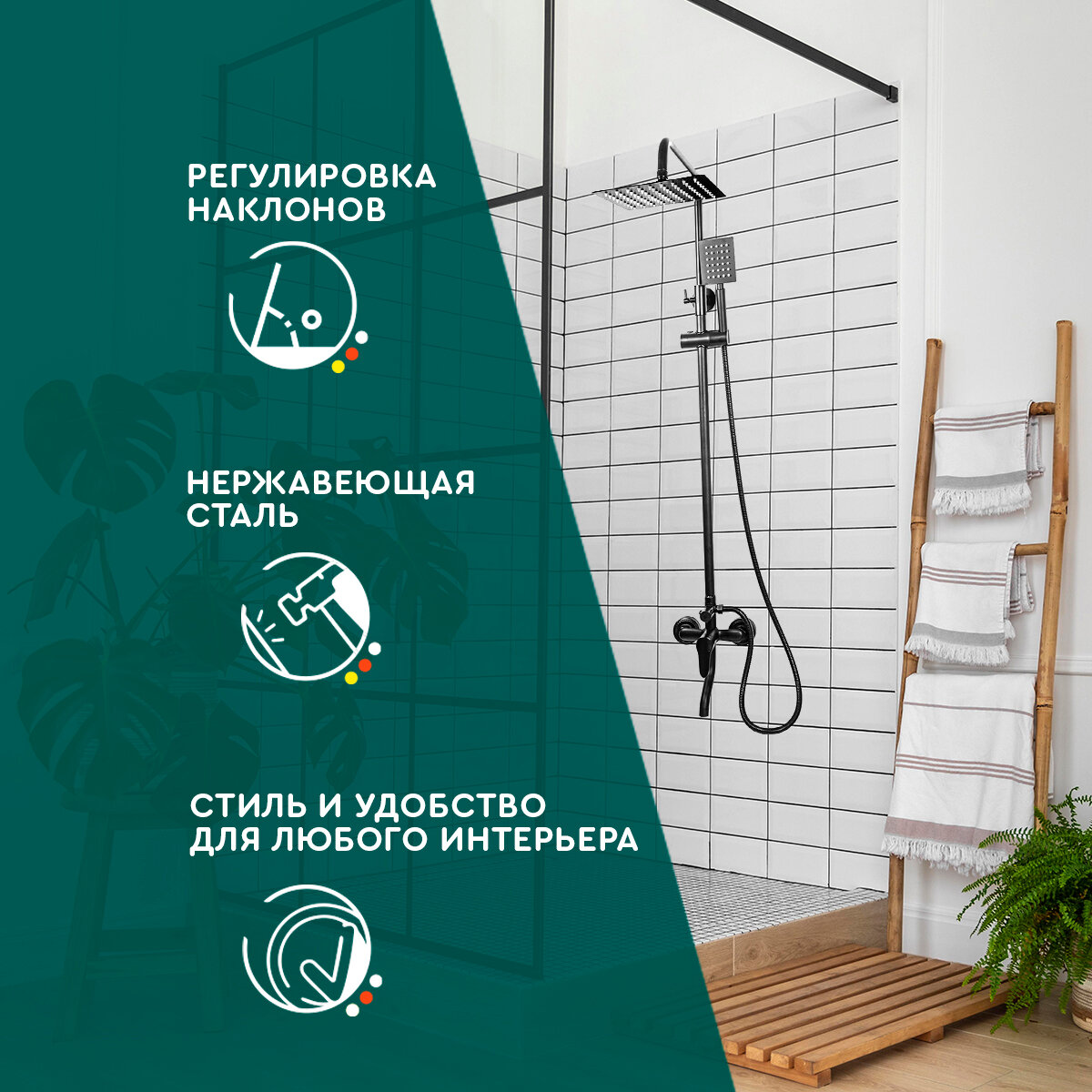 Душевая система с тропическим душем (квадратная форма) Hans&Helma рейлинговая стойка, смеситель с лейкой и краном на стену для ванной комнаты гарнитур интересное: