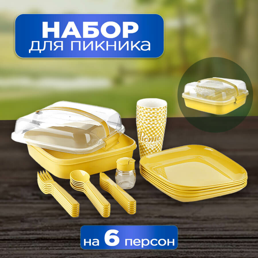 Комплект для пикника, 19 предметов на 4 персоны (Желтый)