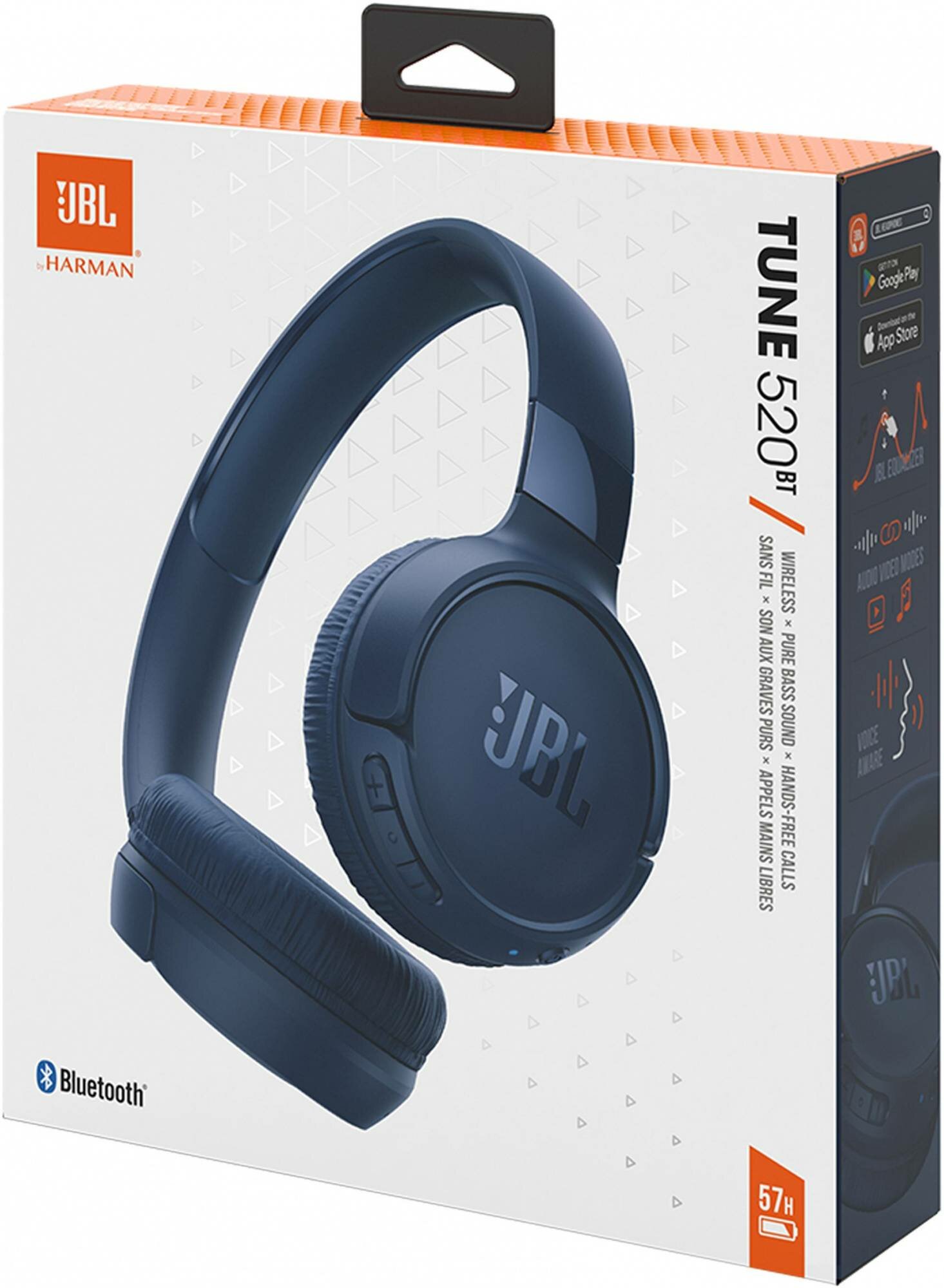 Наушники JBL Tune 520BT, накладные, IPX5, 57 ч автономности, Bluetooth 5.3