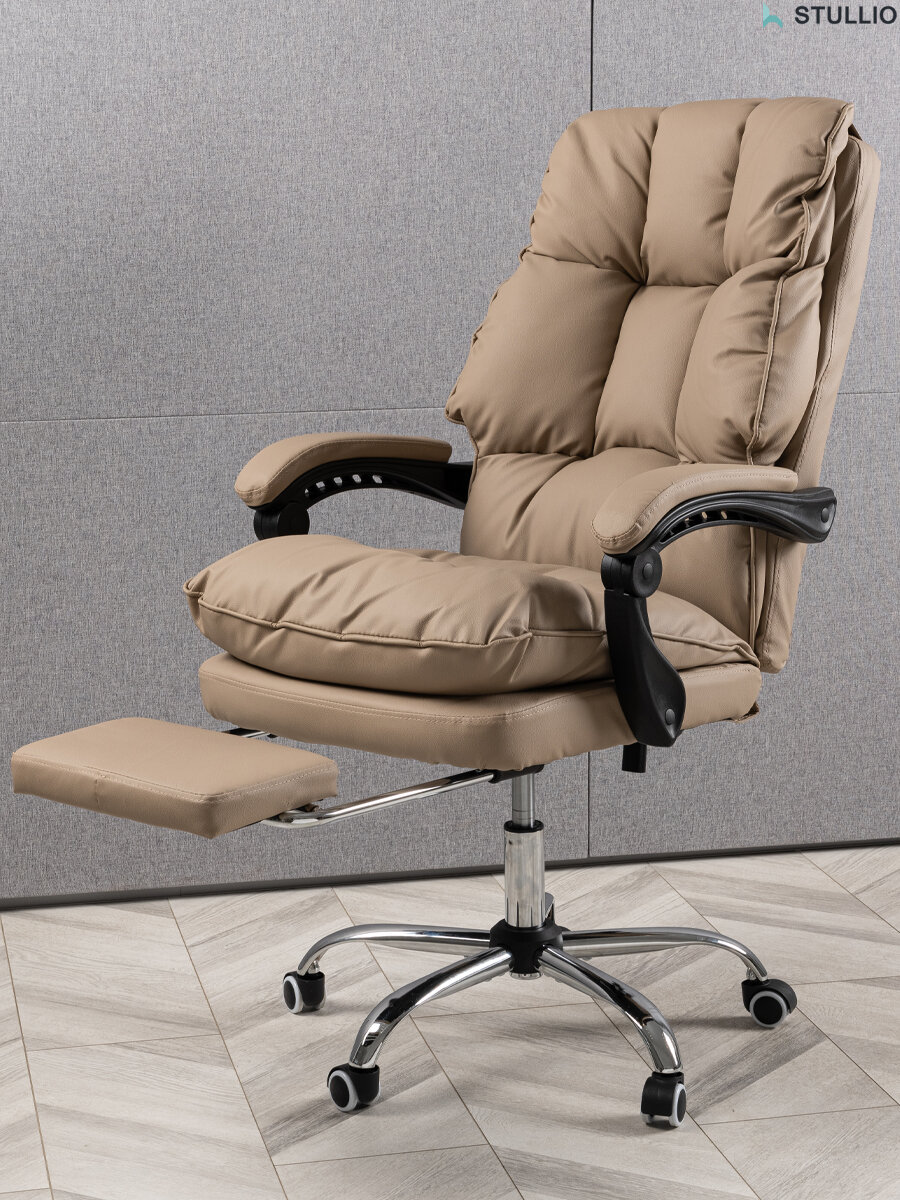 СохранитьМягкое компьютерное кресло для дома и офиса, с подставкой для ног, из экокожи, цвет бежевый интересное: