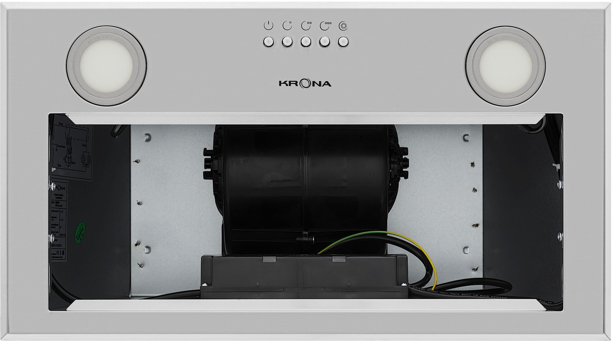 Вытяжка в подвесной шкаф Krona ADEL 600 INOX PB, 600 куб. м/час, ширина 52.5 см, нержавеющая сталь, Китай