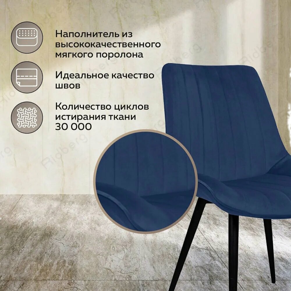 СохранитьСтул для кухни Ridberg HARLEM, велюр, синий. Стул для гостиной, кабинета, спальни и детской. Кресло мягкое для офиса интересное: