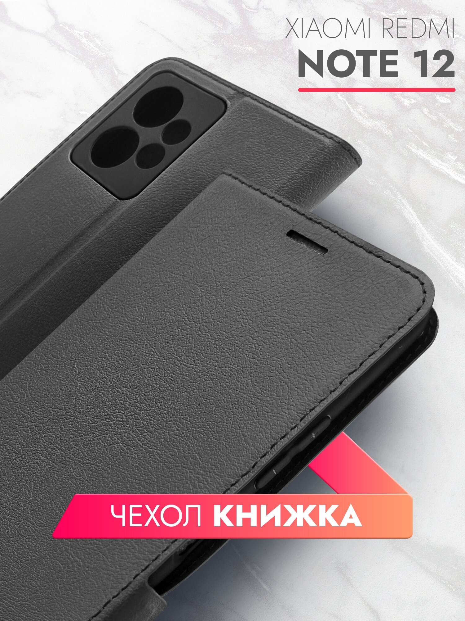 Чехол на Xiaomi Redmi Note 12 (Ксиоми Редми Нот 12) черный книжка эко-кожа с функцией подставки отделением для карт и магнитами Book case, Brozo интересное: