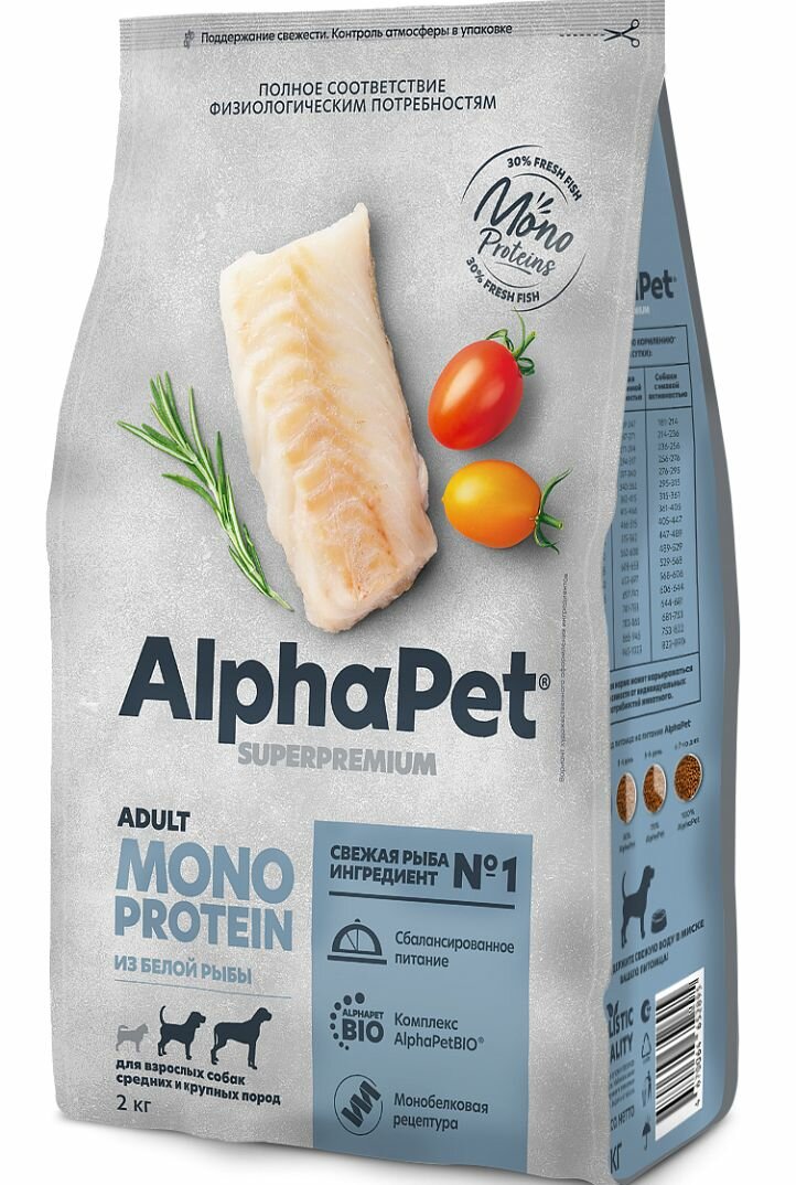 AlphaPet Superpremium Monoprotein сухой корм для взрослых собак средних и крупных пород с белой рыбой - 2 кг интересное: