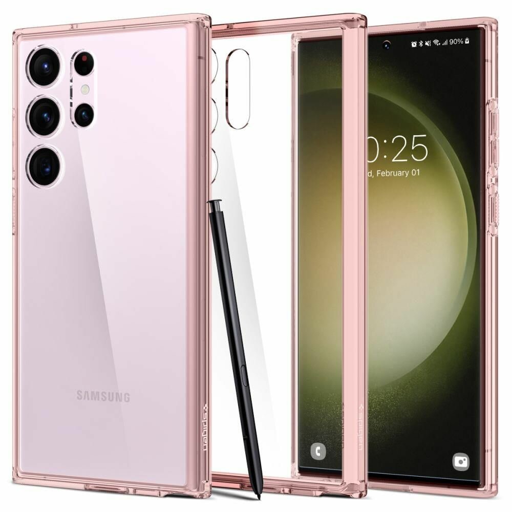 Чехол Spigen Ultra Hybrid для Samsung Galaxy S23 Ultra (ACS06079) розовый/прозрачный интересное: