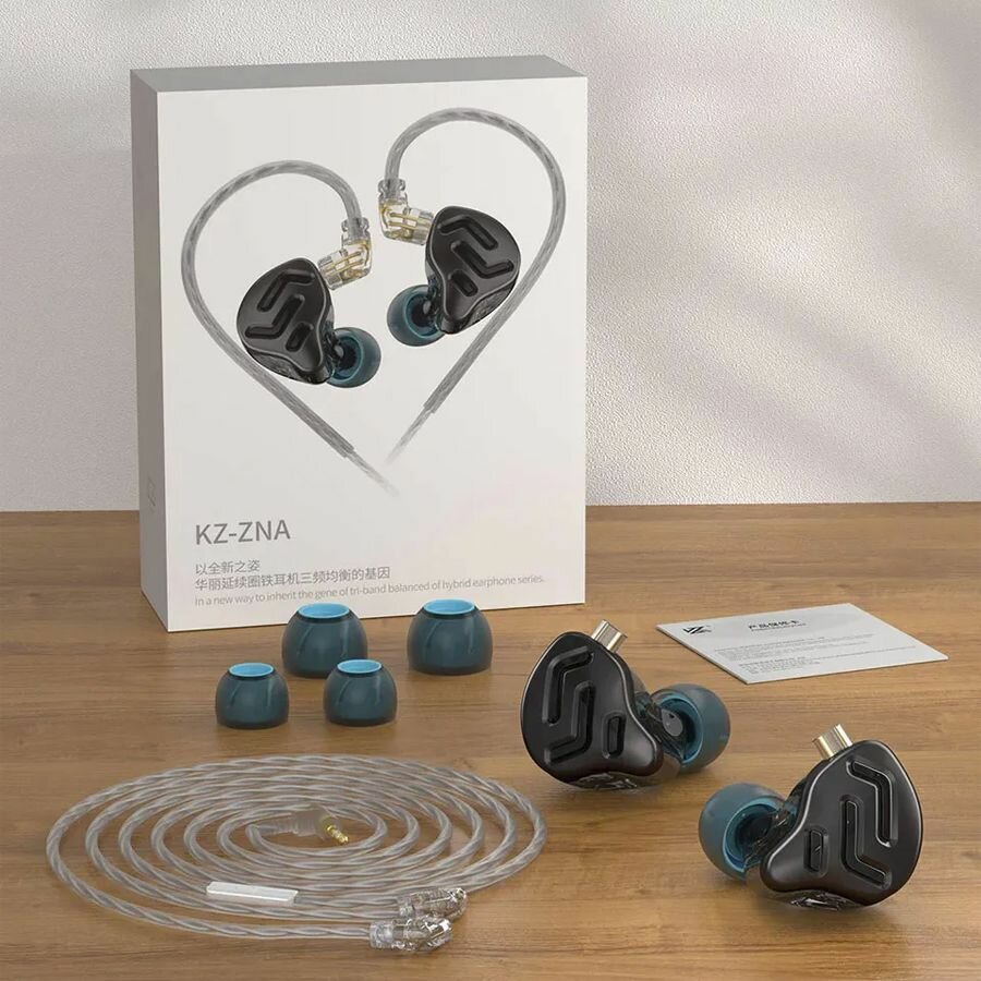 | Комплектация | KZ ZNA, набор дополнительных амбушюр, кабель 2pin – 3.5мм, инструкция |