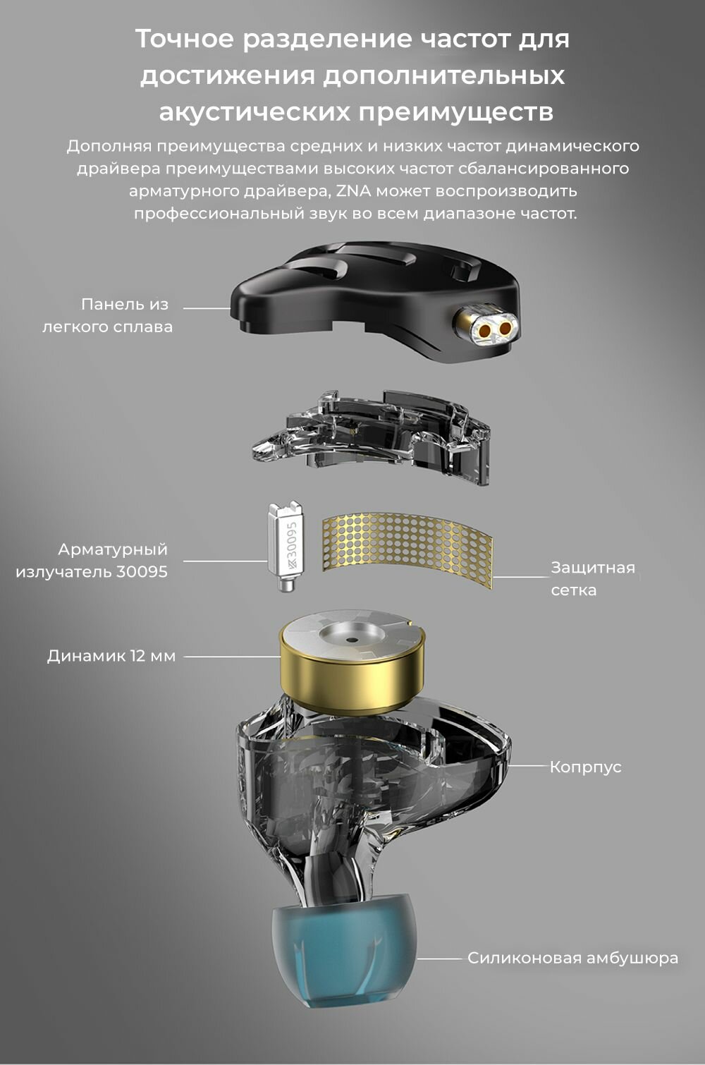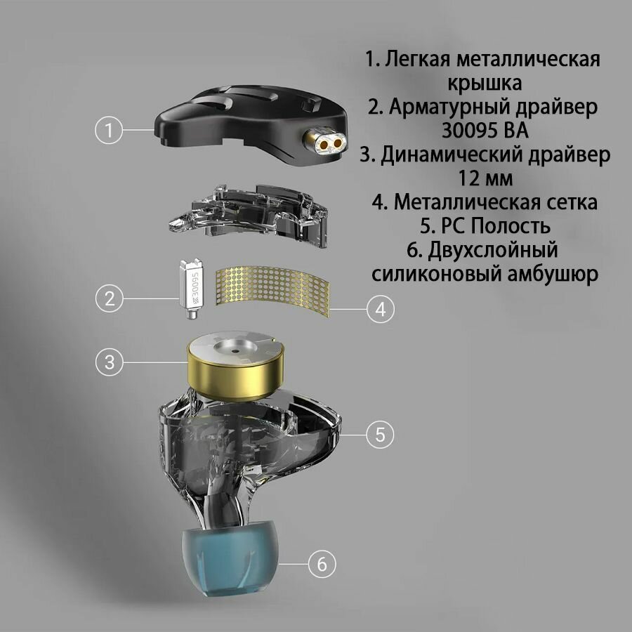 Проводные гибридные наушники KZ ZNA с микрофоном интересное: