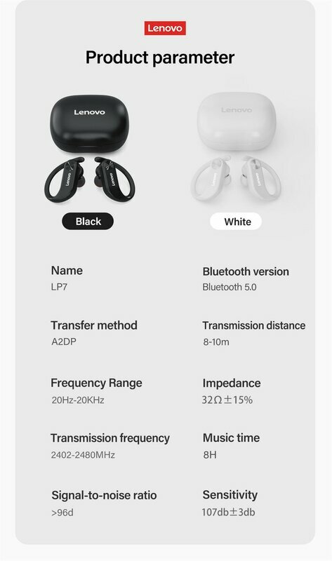 Наушники беспроводные TWS Lenovo T50 ENS крепление за ушами черные интересное: