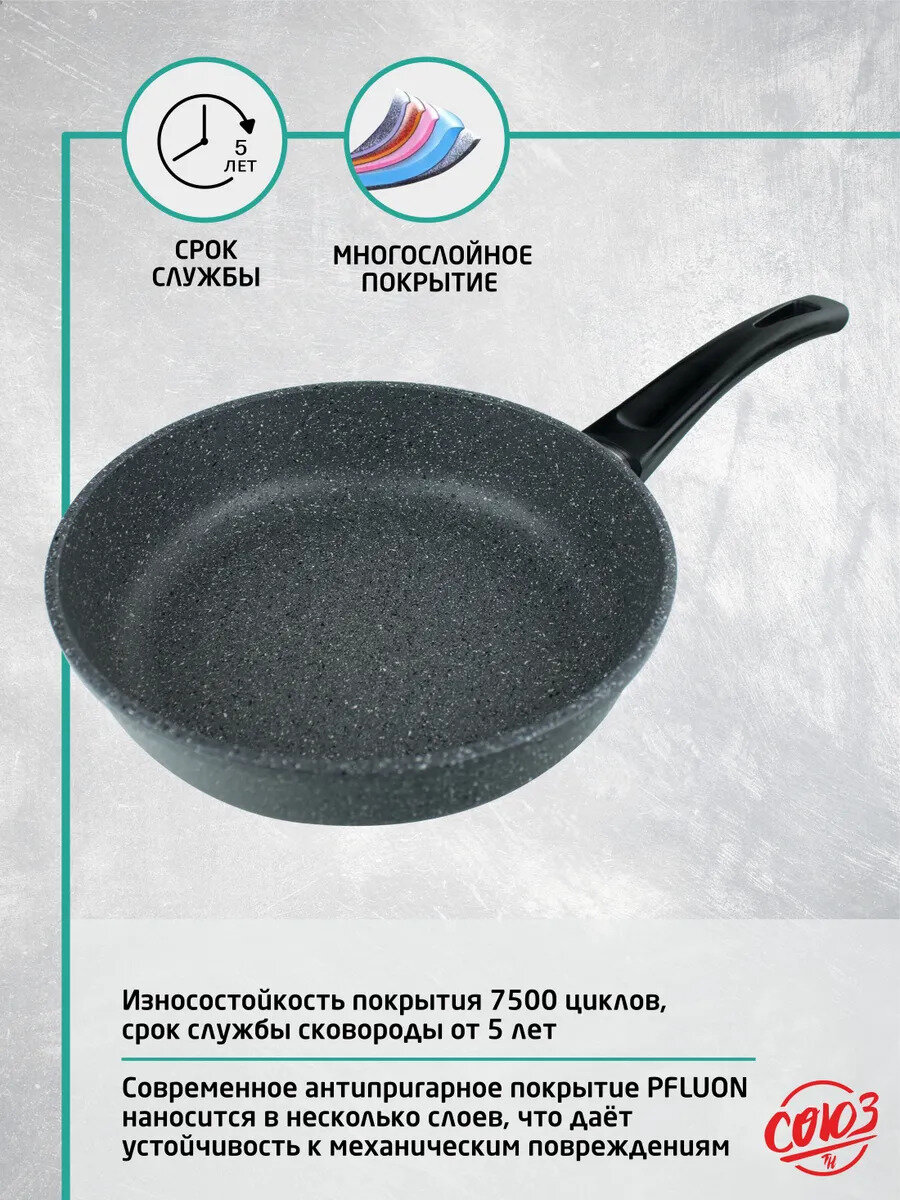 Союз ТН Cковорода с антипригарным покрытием из литого алюминия несъёмная ручка диаметр 22 см