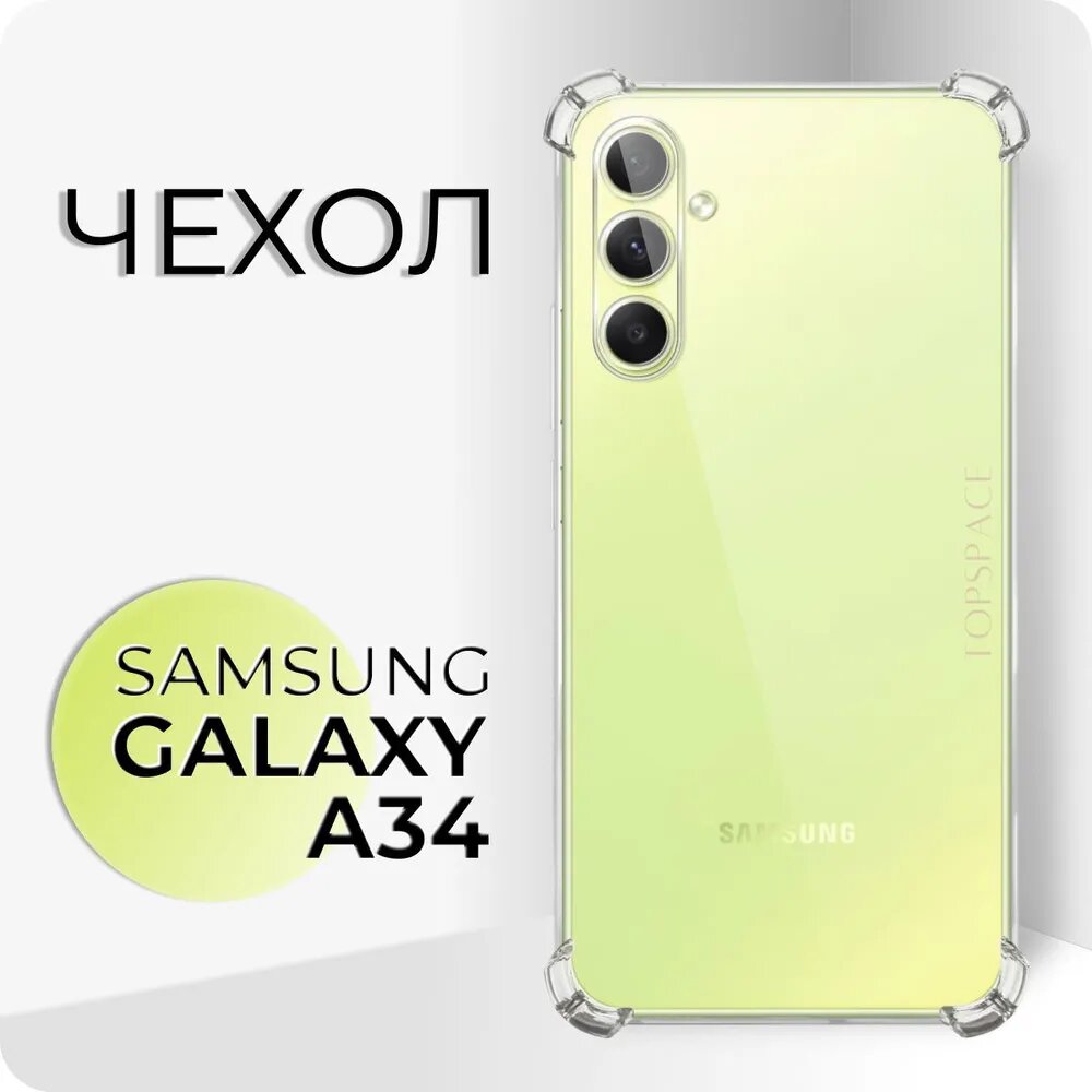 Чехол на Самсунг А34 прозрачный противоударный с защитой камеры и углов для Samsung Galaxy A34 / Самсунг Гелекси
