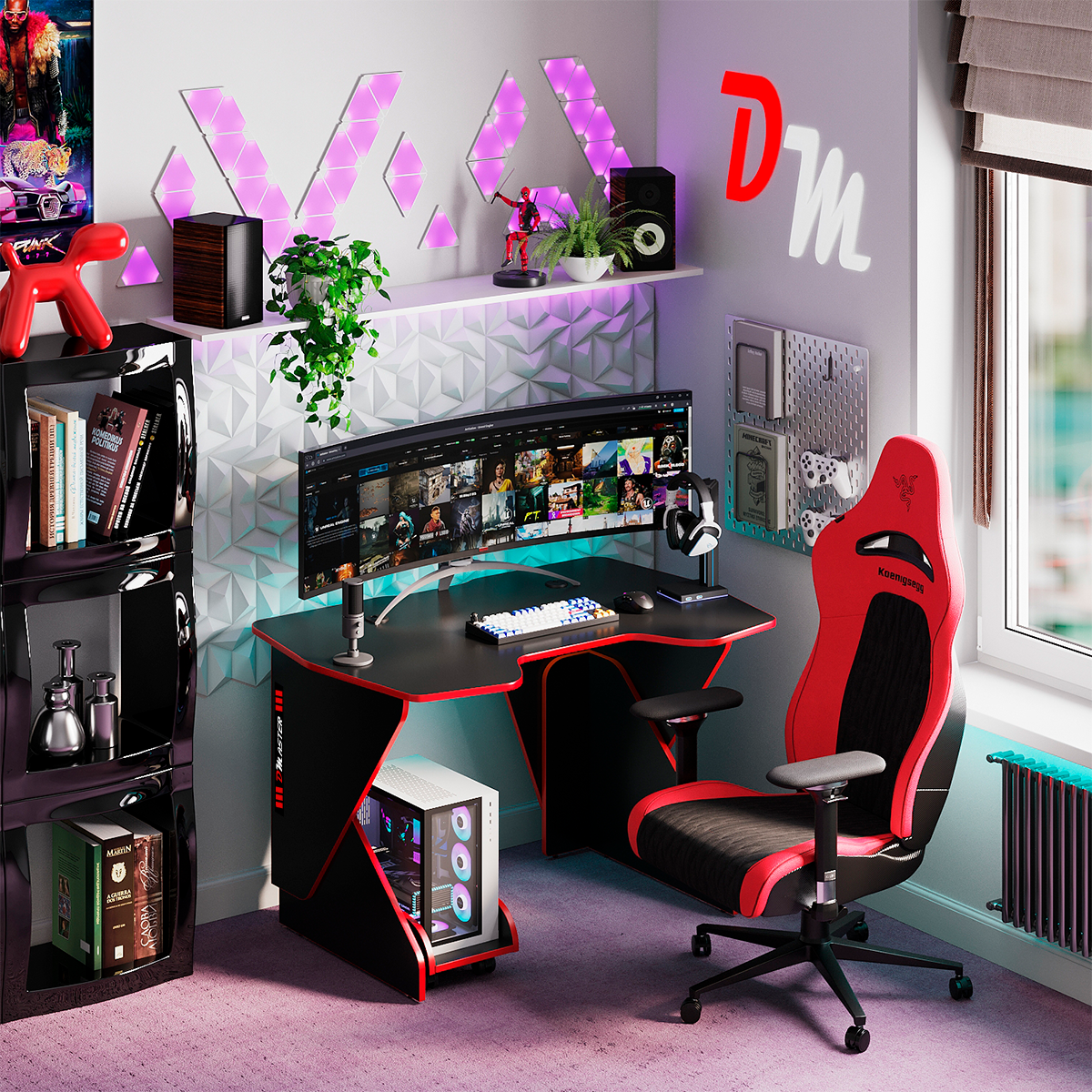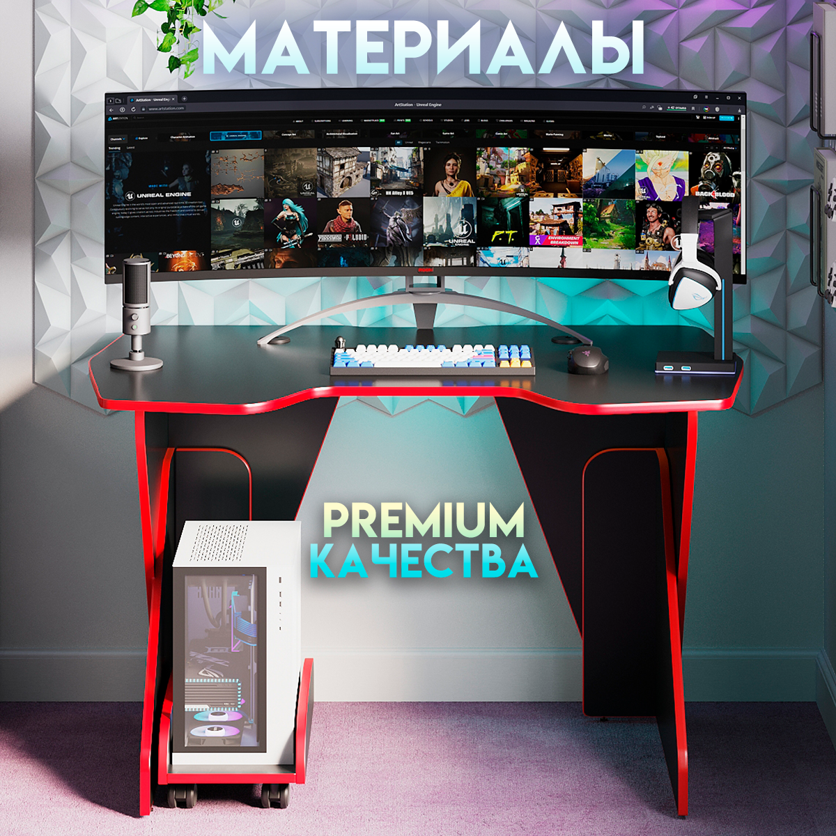 Геймерский компьютерный игровой стол и подставка под блок черный-красный / дэн-мастер / офисный, письменный стол для компьютера пк интересное: