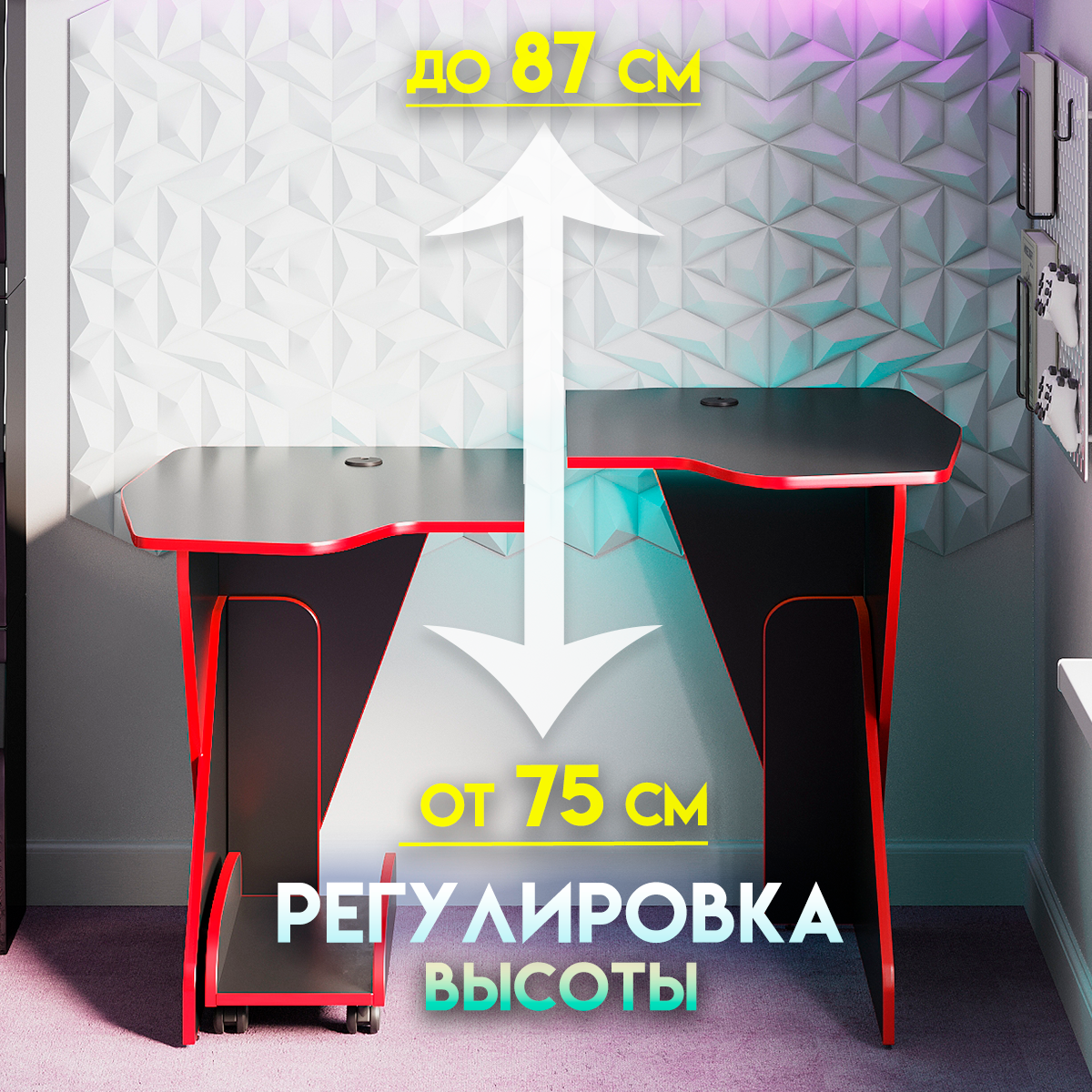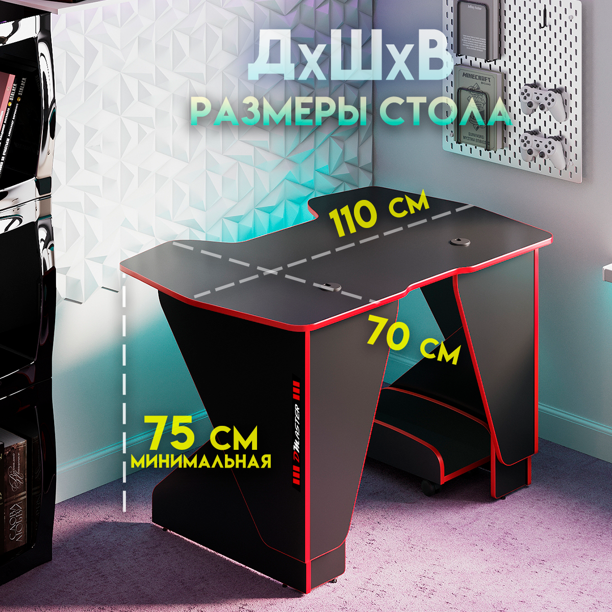 Купить Геймерский компьютерный игровой стол и подставка под блок черный-красный / дэн-мастер / офисный, письменный стол для компьютера пк