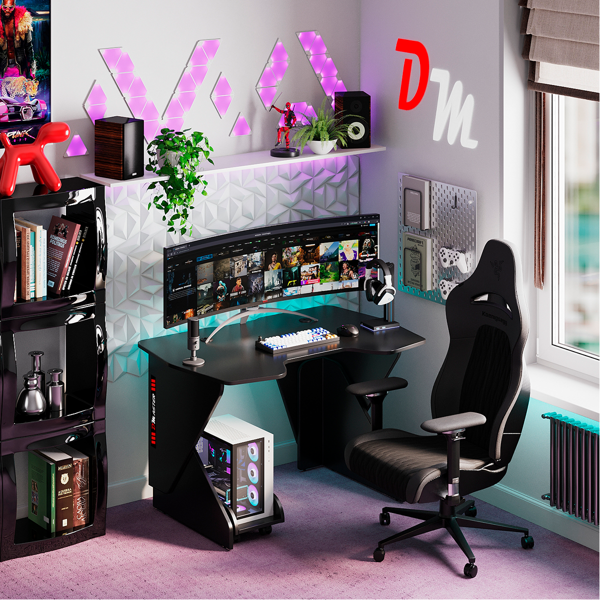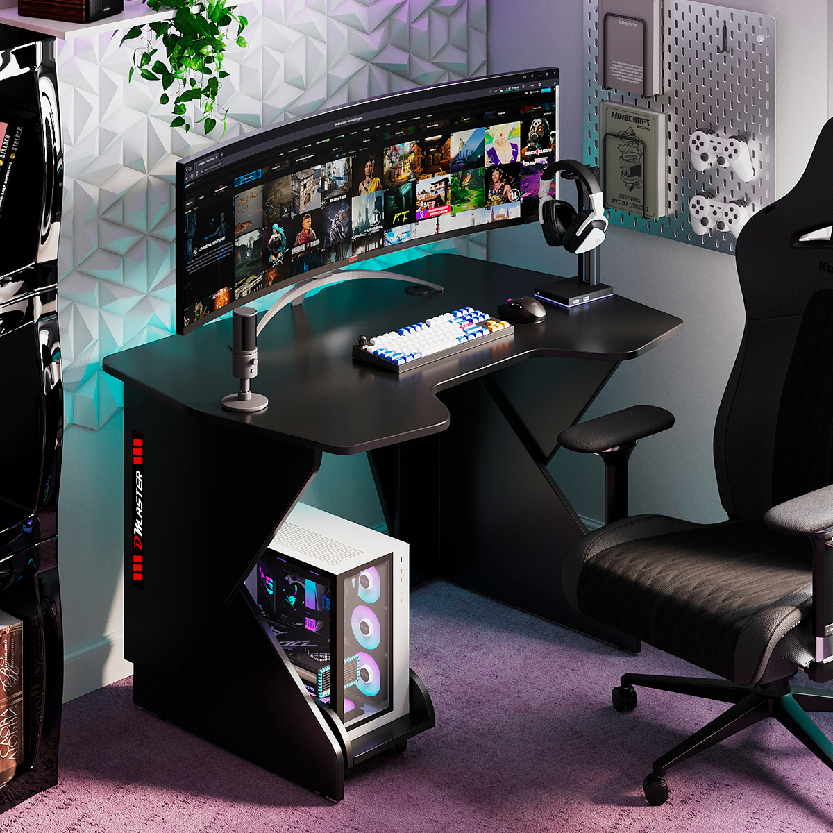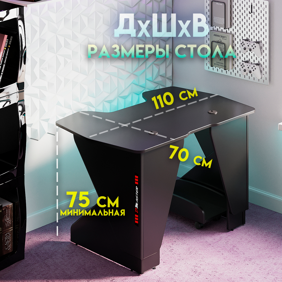 Геймерский компьютерный игровой стол и подставка под блок черный / дэн-мастер / офисный, письменный стол для компьютера пк интересное:
