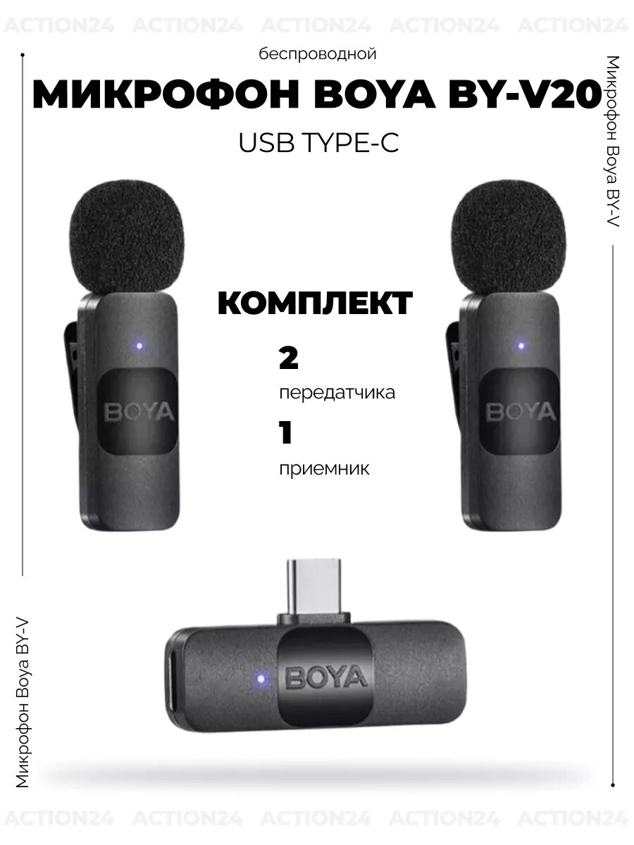 Купить Беспроводная система Boya BY-V20, 2.4 ГГц, TX+TX+RX, USB-C
