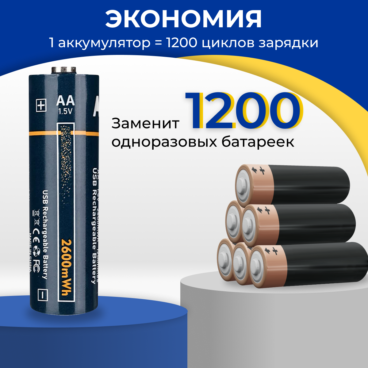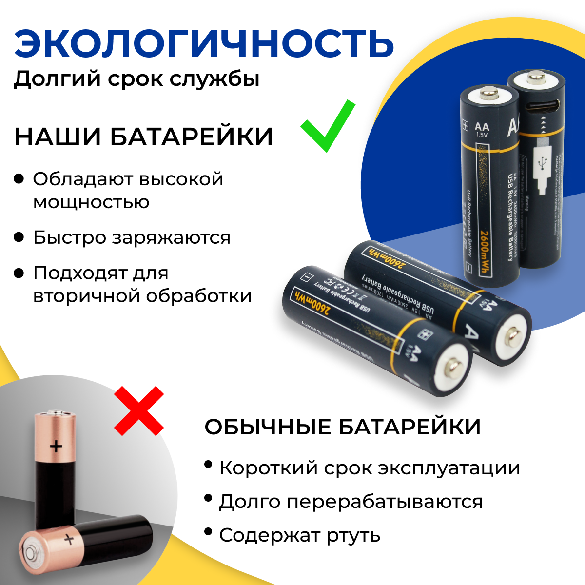 СохранитьАккумуляторные батарейки AA 2600 мАч Type-c в комплекте / Пальчиковые батарейки с разъемом Тайп Си / Заряжаемые батарейки 4 штуки в упаковке интересное: