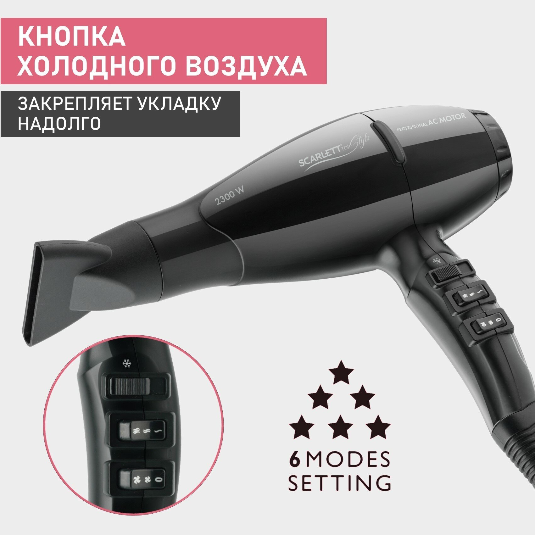 Фен Scarlett , 2300 вт, Профессиональный мотор AC Motor интересное: