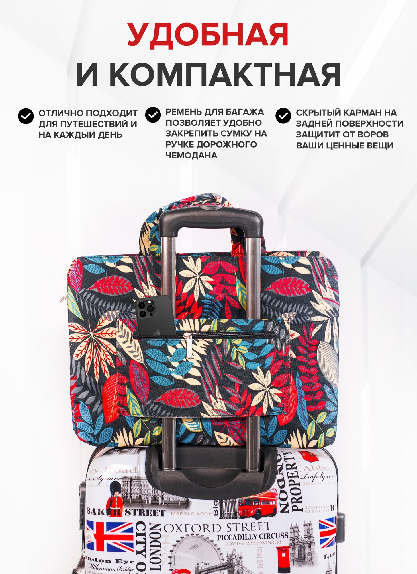 Сумка для ноутбука 15.6, 16 и 17 дюймов KINMAC с ремнем на плечо и большим карманом спереди (Цветы)