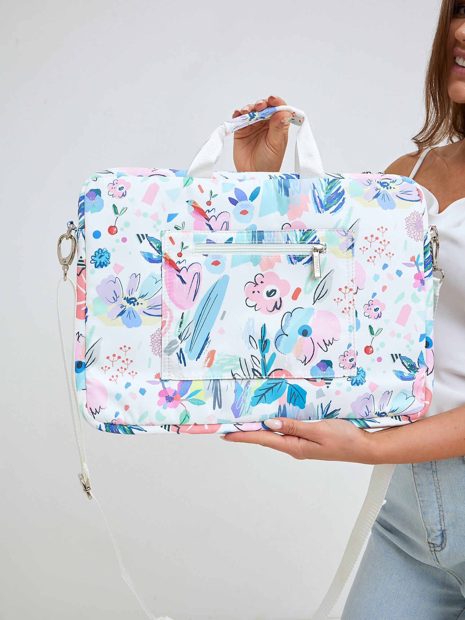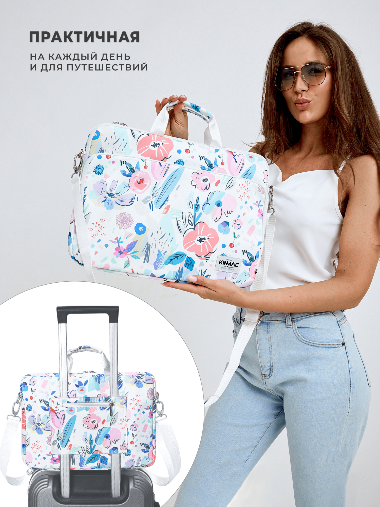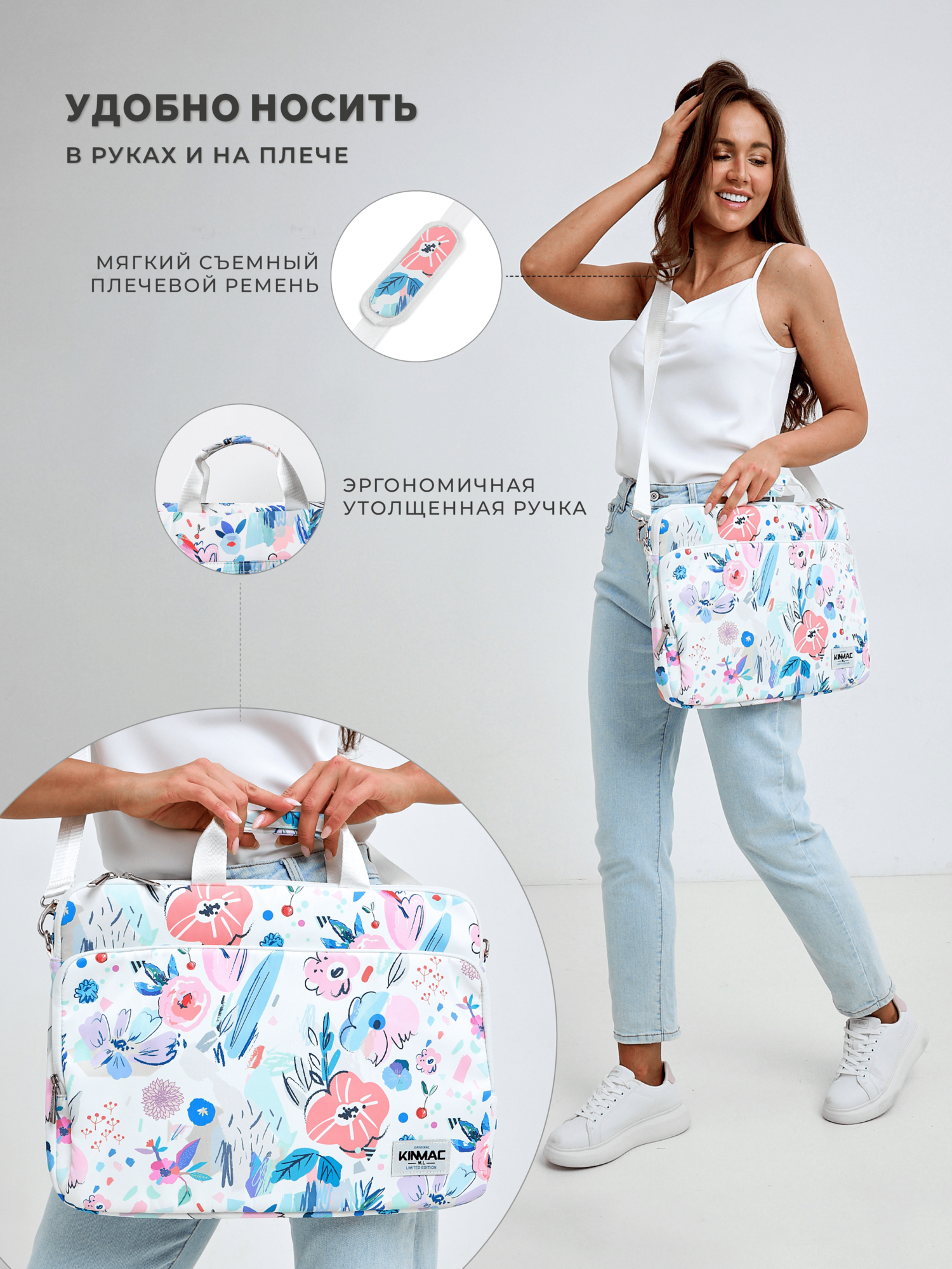 Купить Сумка для ноутбука 15.6, 16 и 17 дюймов KINMAC с ремнем на плечо и большим карманом спереди (Цветы на белом)
