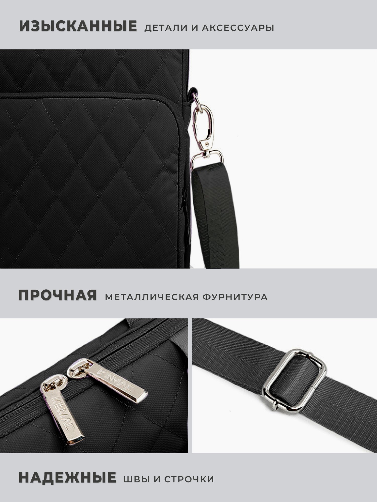 Купить Сумка для ноутбука 15.6, 16 и 17 дюймов KINMAC с ремнем на плечо и большим карманом спереди (Стеганая черная)