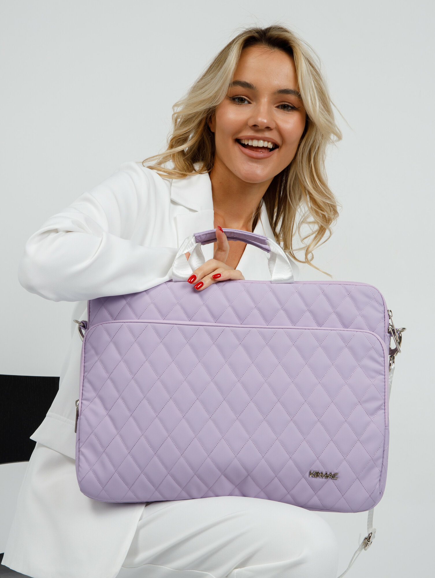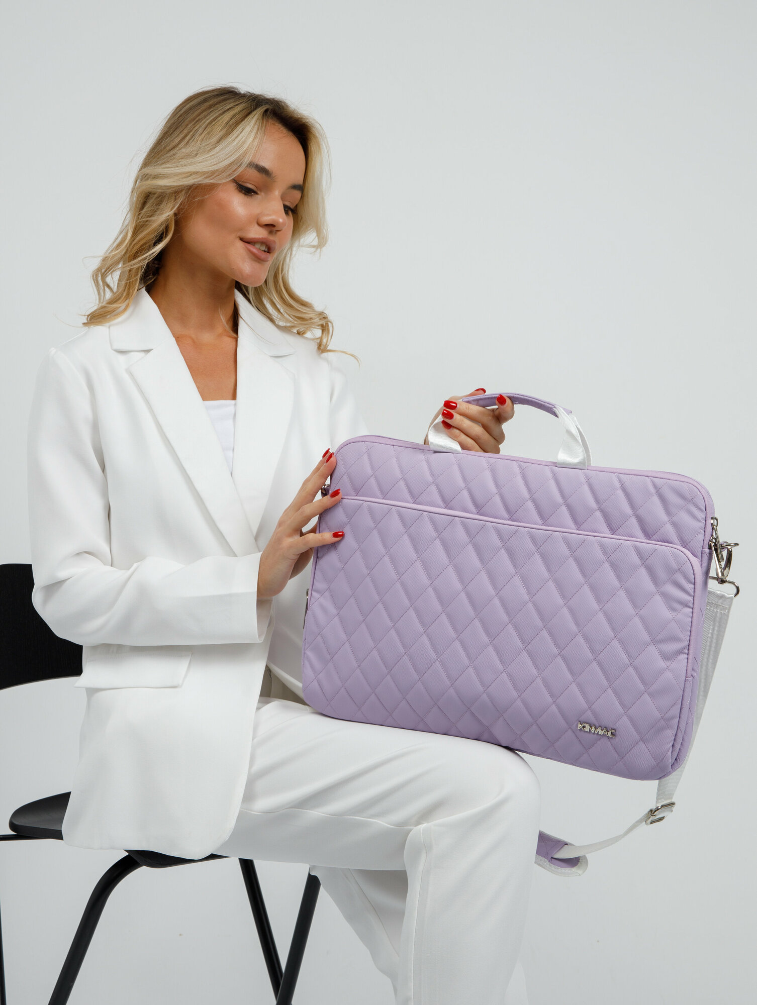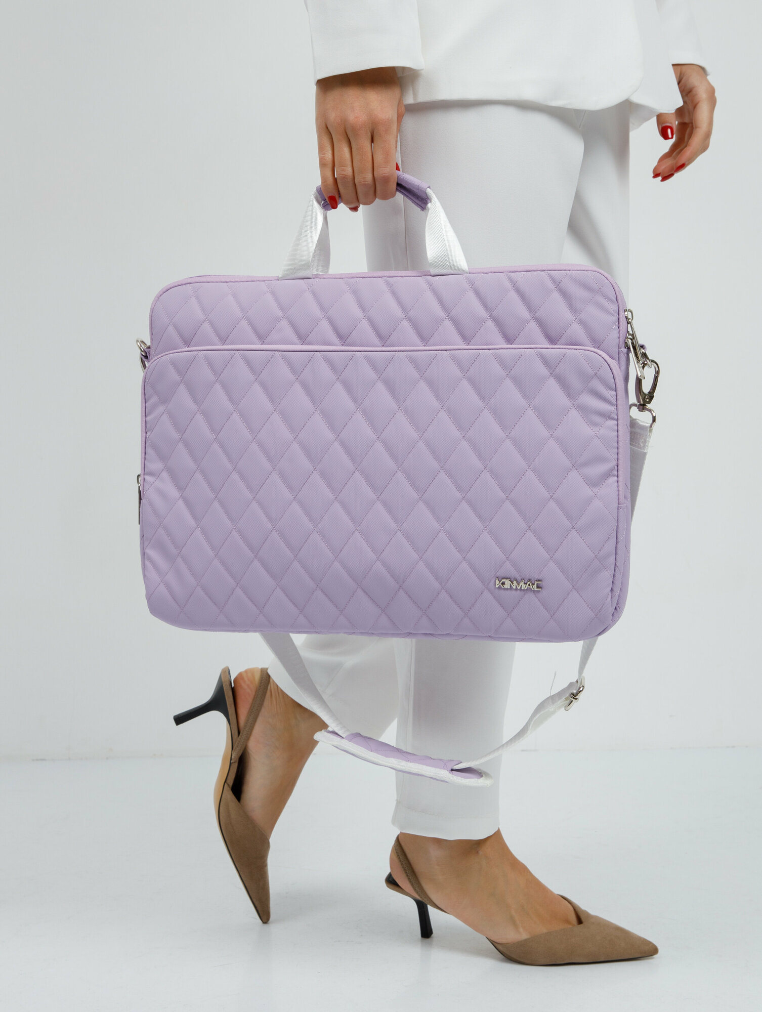 Сумка для ноутбука 15.6, 16 и 17 дюймов KINMAC с ремнем на плечо и большим карманом спереди (Стеганая белая)
