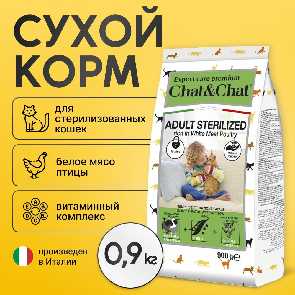 Корм сухой Chat&Chat для стерилизованных кошек с белым мясом 0,9кг
