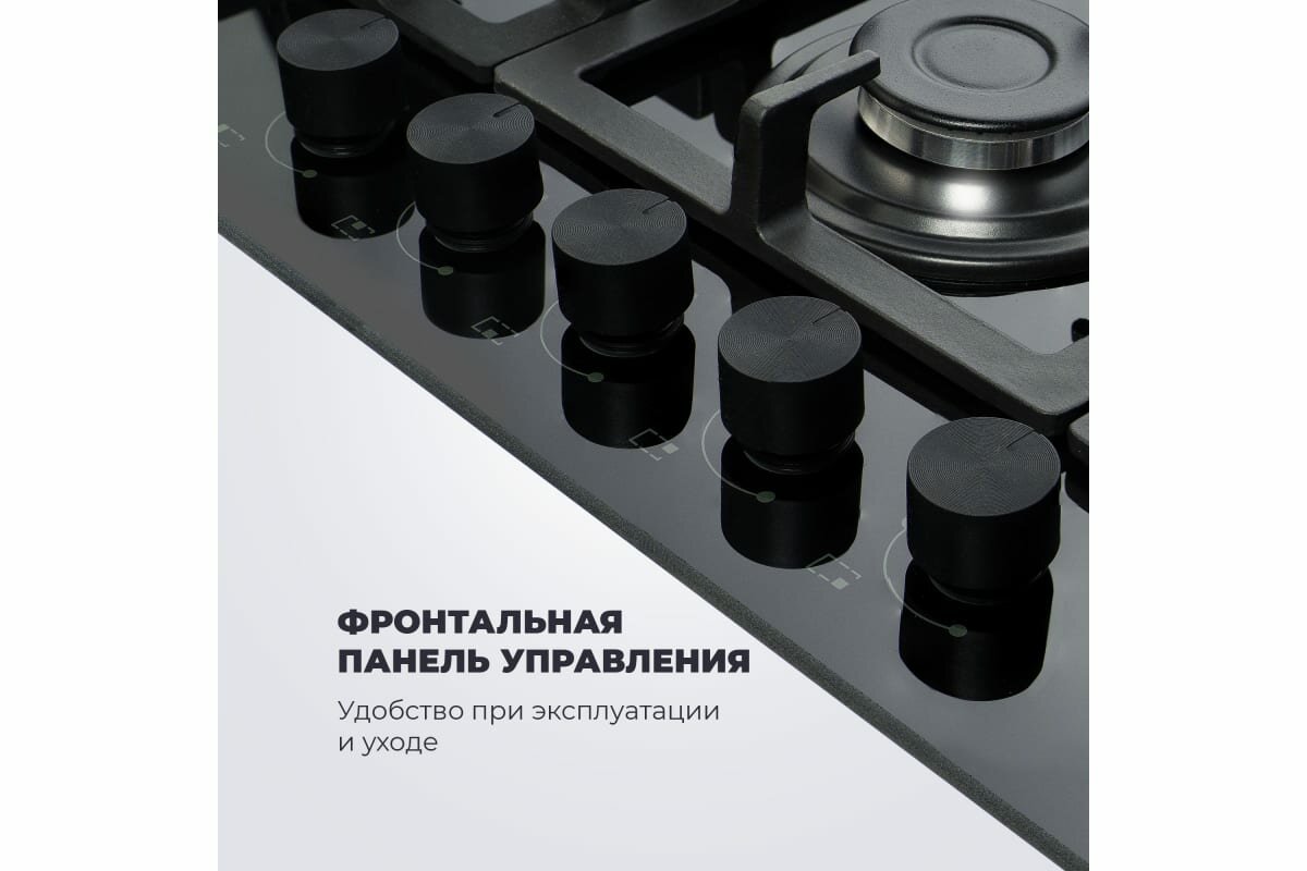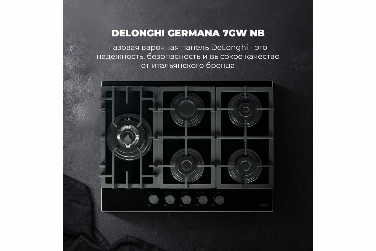 Варочная панель газовая 69 см DeLonghi GERMANA 7GW NB, WOK-конфорка, чугунные решетки, автоматический розжиг, газ-контроль, газовая варочная панель встраиваемая, варочная поверхность