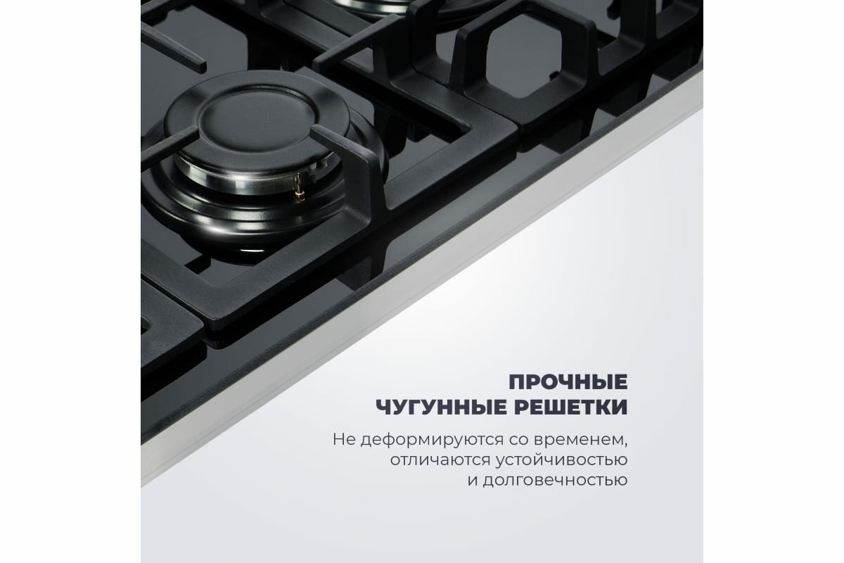 Варочная панель газовая 69 см DeLonghi GERMANA 7GW IM, WOK-конфорка, чугунные решетки, автоматический розжиг, газ-контроль