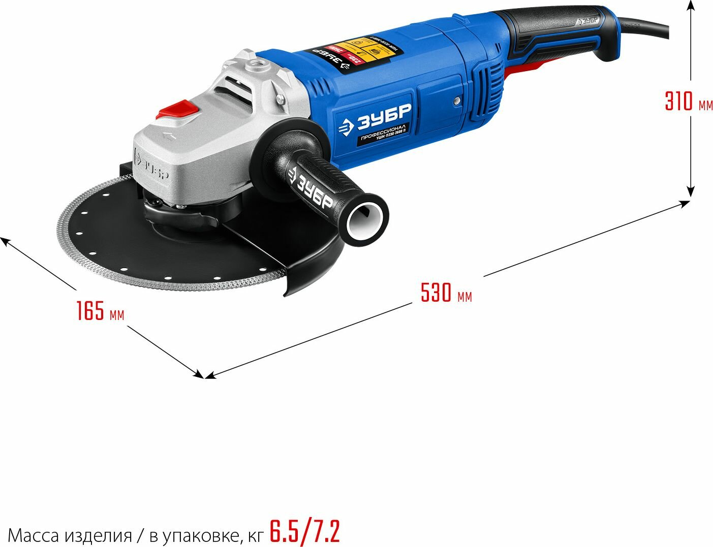 ЗУБР Профессионал, УШМ-П230-2600 п, 230 мм, 2600 Вт УШМ-П230-2600 П