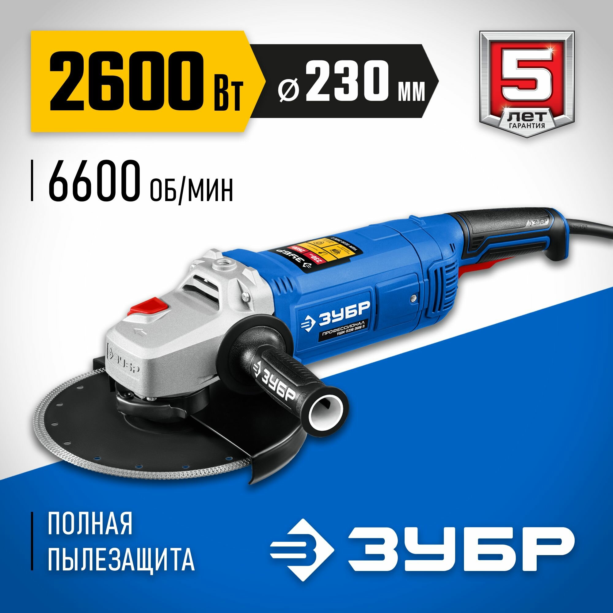 УШМ-П230-2600 П ЗУБР Профессионал, УШМ-П230-2600 п, 230 мм, 2600 Вт