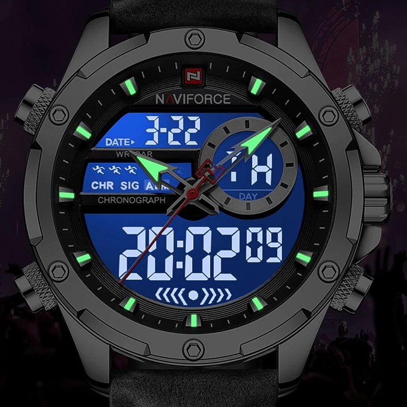 Купить Часы наручные мужские Naviforce NF9208 кварцевые, круглые, с секундомером и подсветкой, серебристые/черные
