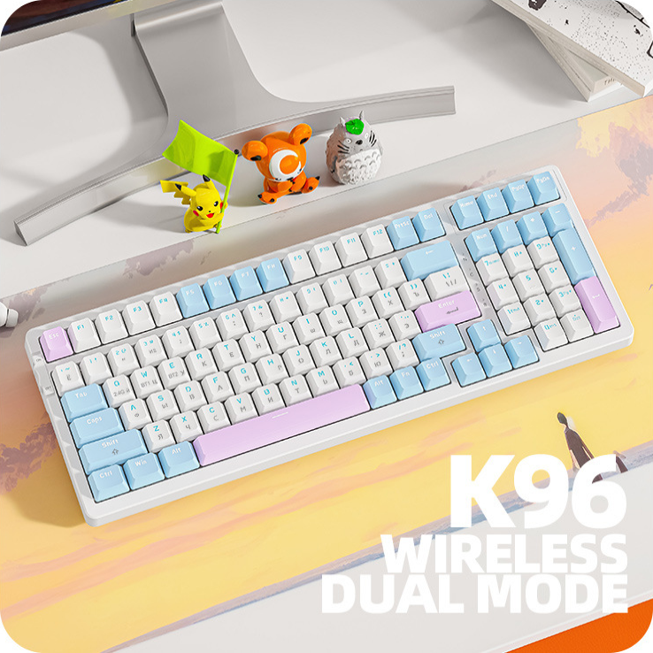 Клавиатура механическая беспроводная Wolf K96 Bluetooth+2.4G+Hot Swap русская/английская игровая для компьютера ноутбука планшета, Keyboard wireless