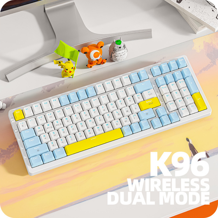 Клавиатура механическая беспроводная Wolf K96 Bluetooth+2.4G+Hot Swap русская английская игровая для компьютера ноутбука планшета Keyboard, wireless