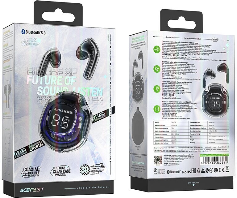 Купить Беспроводные наушники ACEFAST T8 Crystal color bluetooth earbuds чёрные (Bright black)