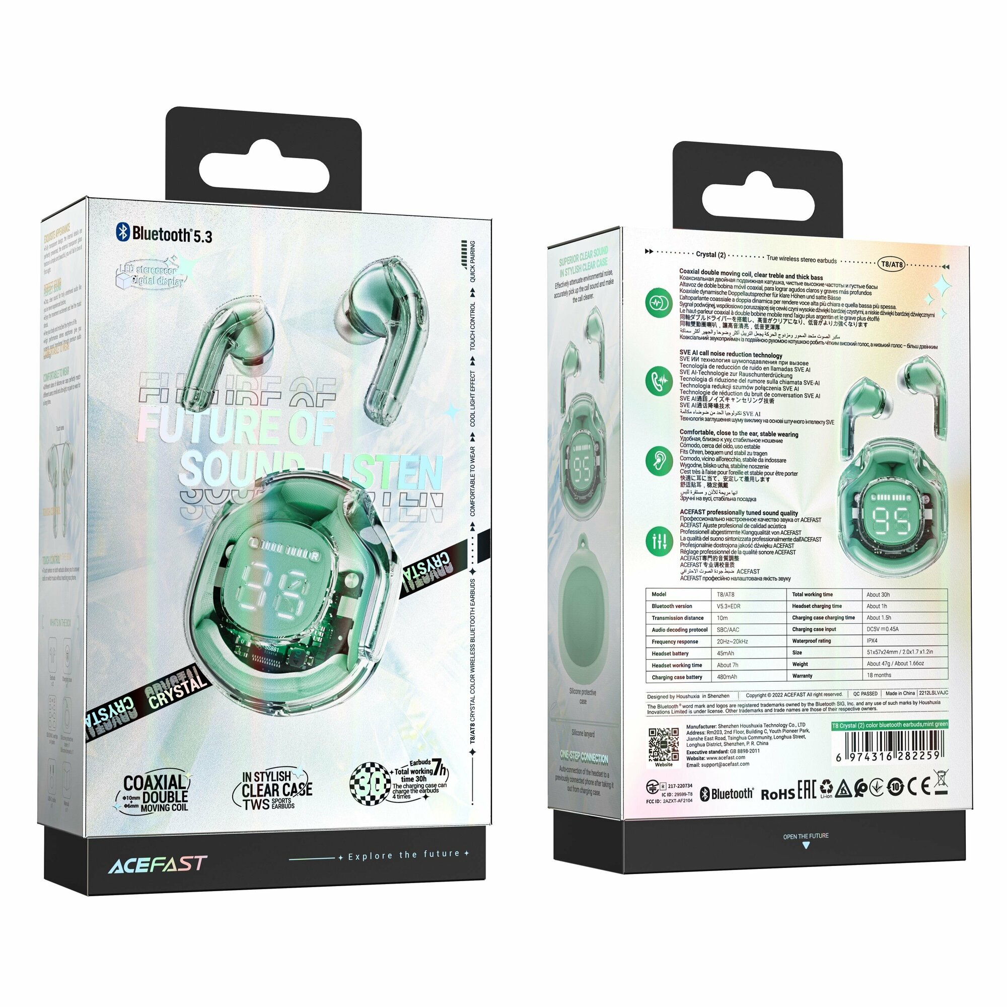Беспроводные наушники ACEFAST T8 Crystal color bluetooth earbuds зелёные (Mint green)