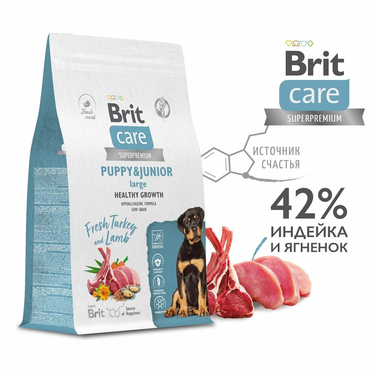 Сухой корм для щенков и молодых собак крупных пород, супер-премиум с индейкой и ягненком "Dog Puppy&Junior L Healthy Growth" 3 кг BRIT CARE