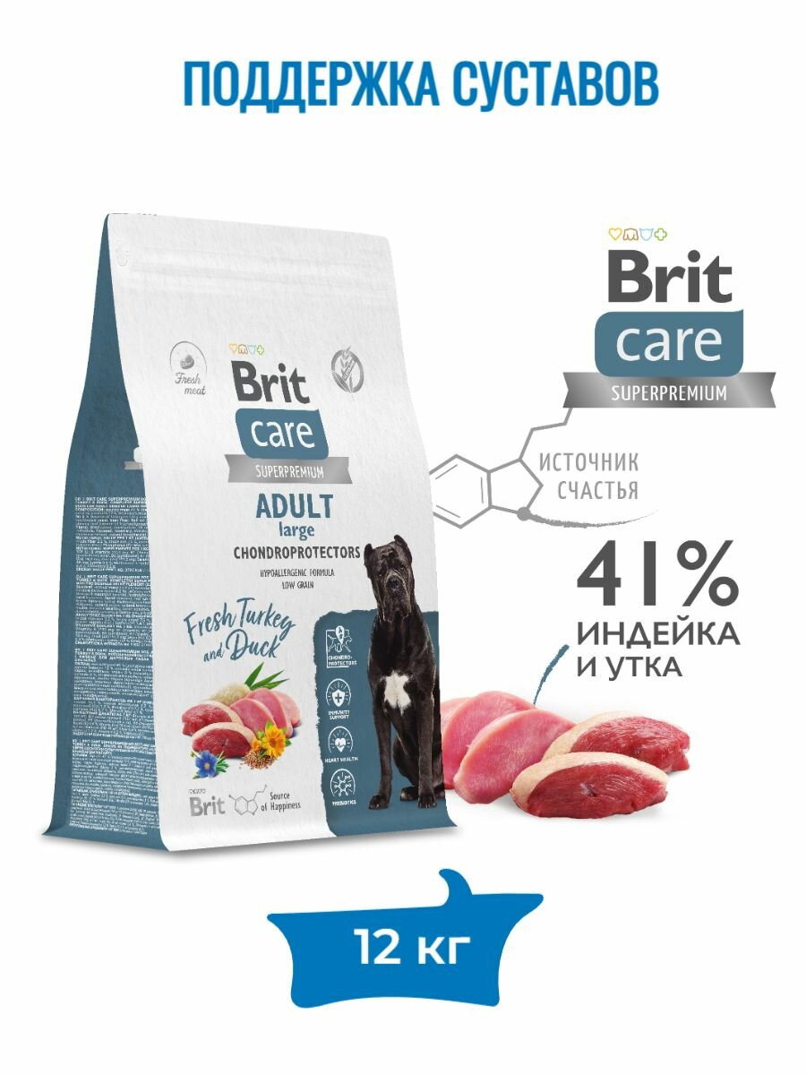 Сухой корм для взрослых собак крупных пород супер-премиум с индейкой и уткой "Dog Adult Large Chondroprotectors" 12 кг BRIT CARE