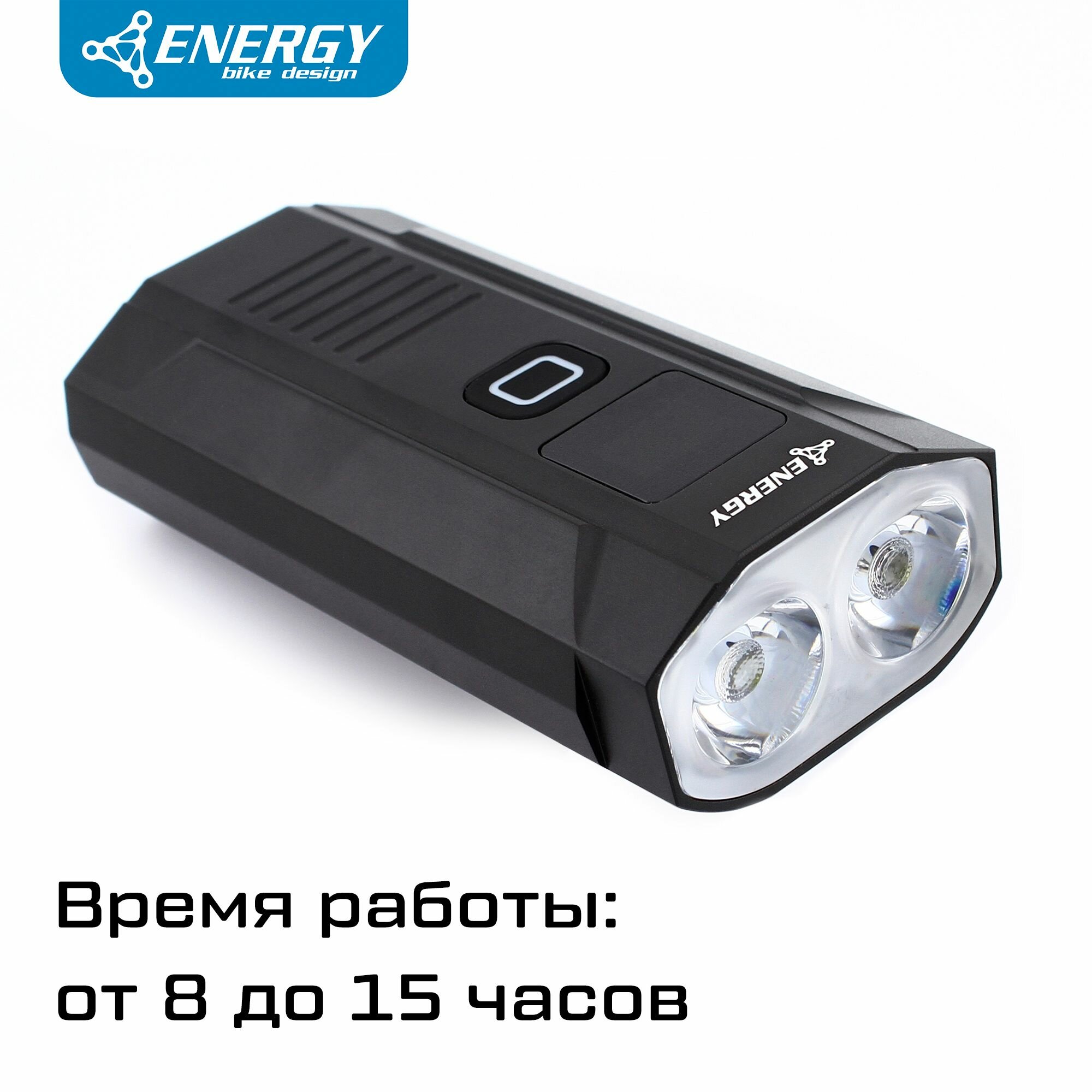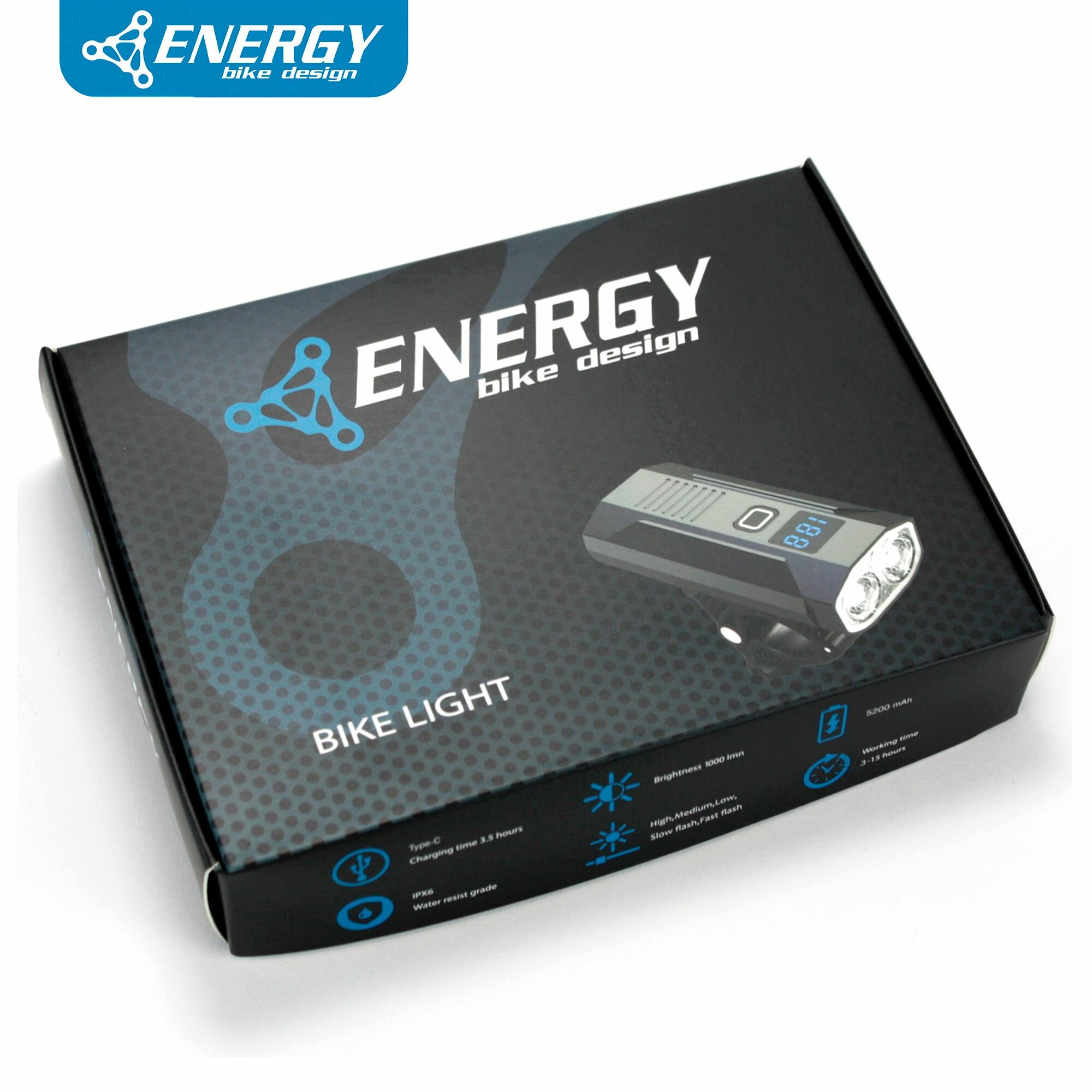 Купить Фонарь передний Energy Power 1000 lumen, 5 режимов, USB C, алюминиевый корпус, батарея 5200mAh, чёрный