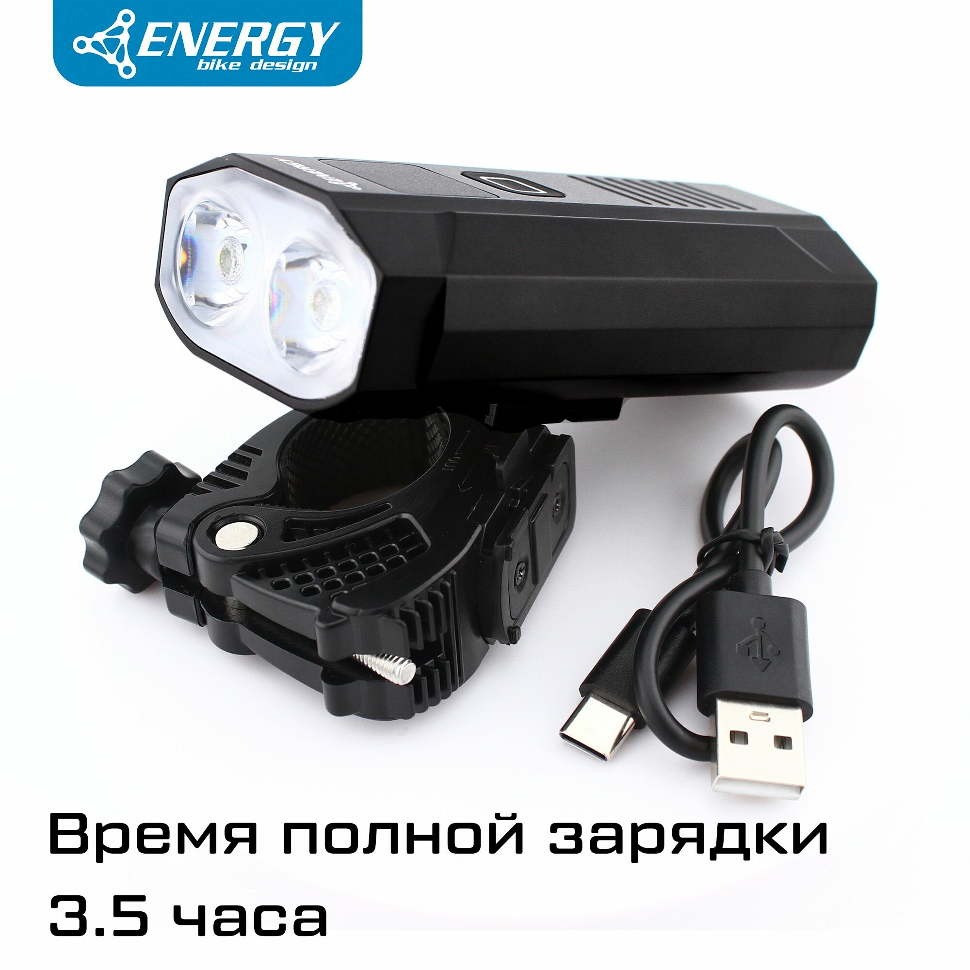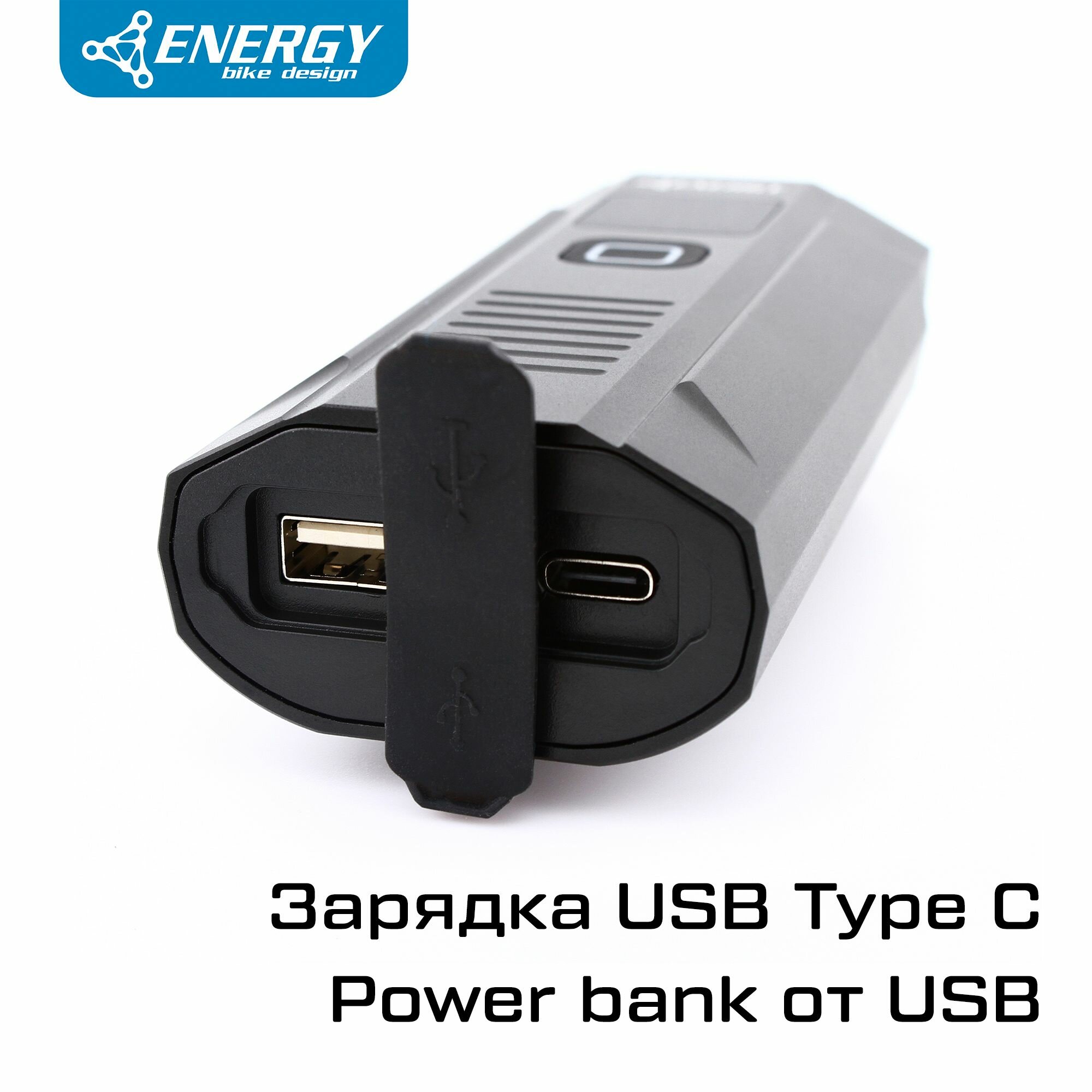 Фонарь передний Energy Power 1000 lumen, 5 режимов, USB C, алюминиевый корпус, батарея 5200mAh, чёрный интересное: