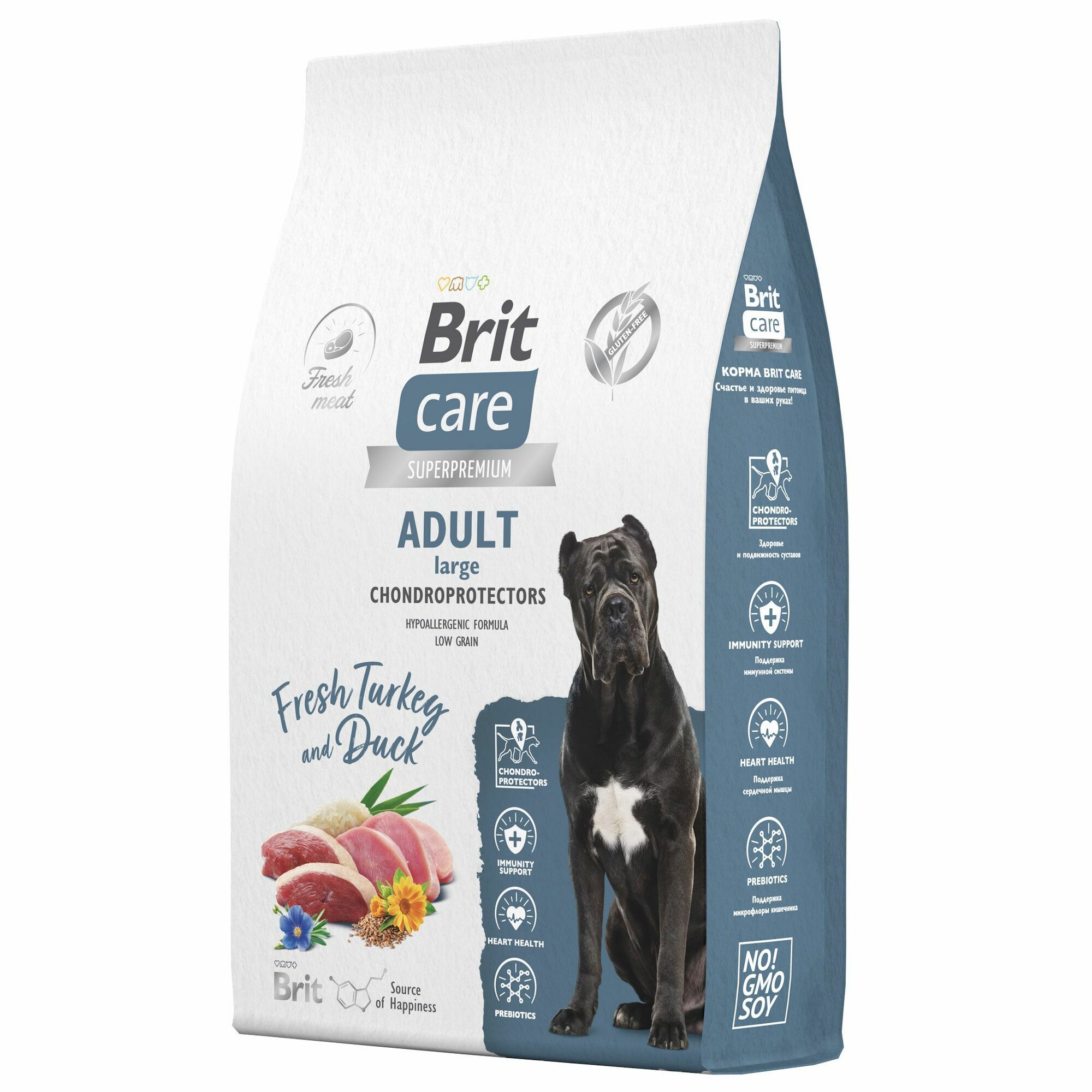 Сухой корм для взрослых собак крупных пород супер-премиум с индейкой и уткой "Dog Adult Large Chondroprotectors" 12 кг BRIT CARE