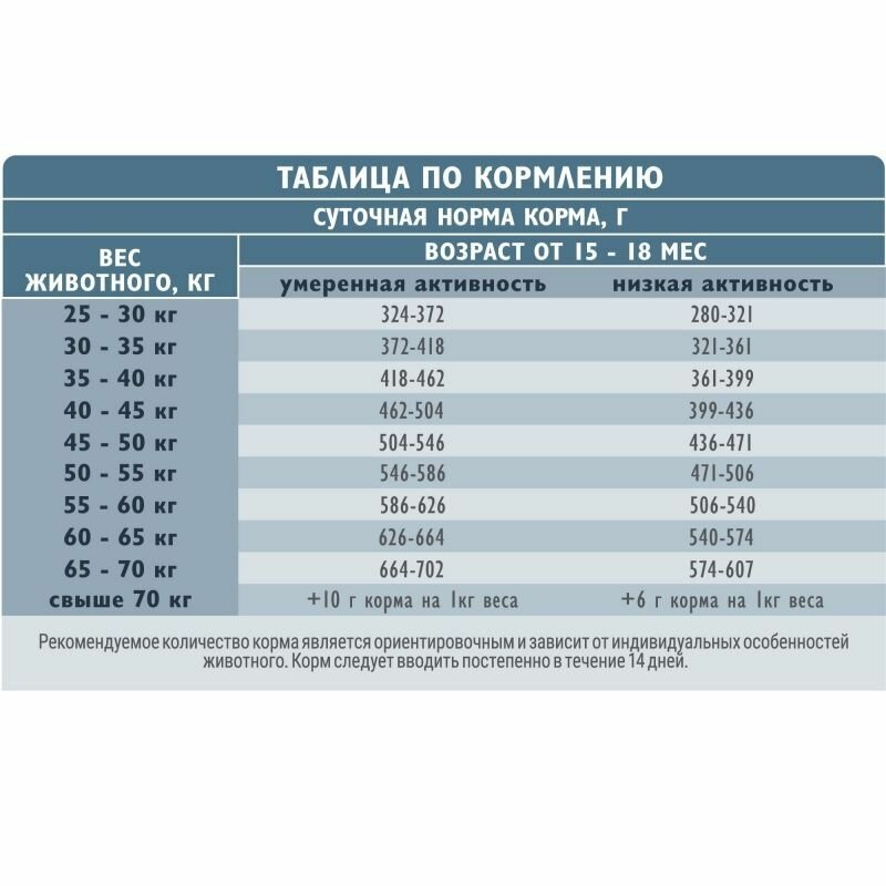| Дозировка | - вес собаки 10 кг - 112 г - вес собаки 15 кг - 152 г - вес собаки 20 кг - 189 г - вес собаки 25 кг - 223 г |