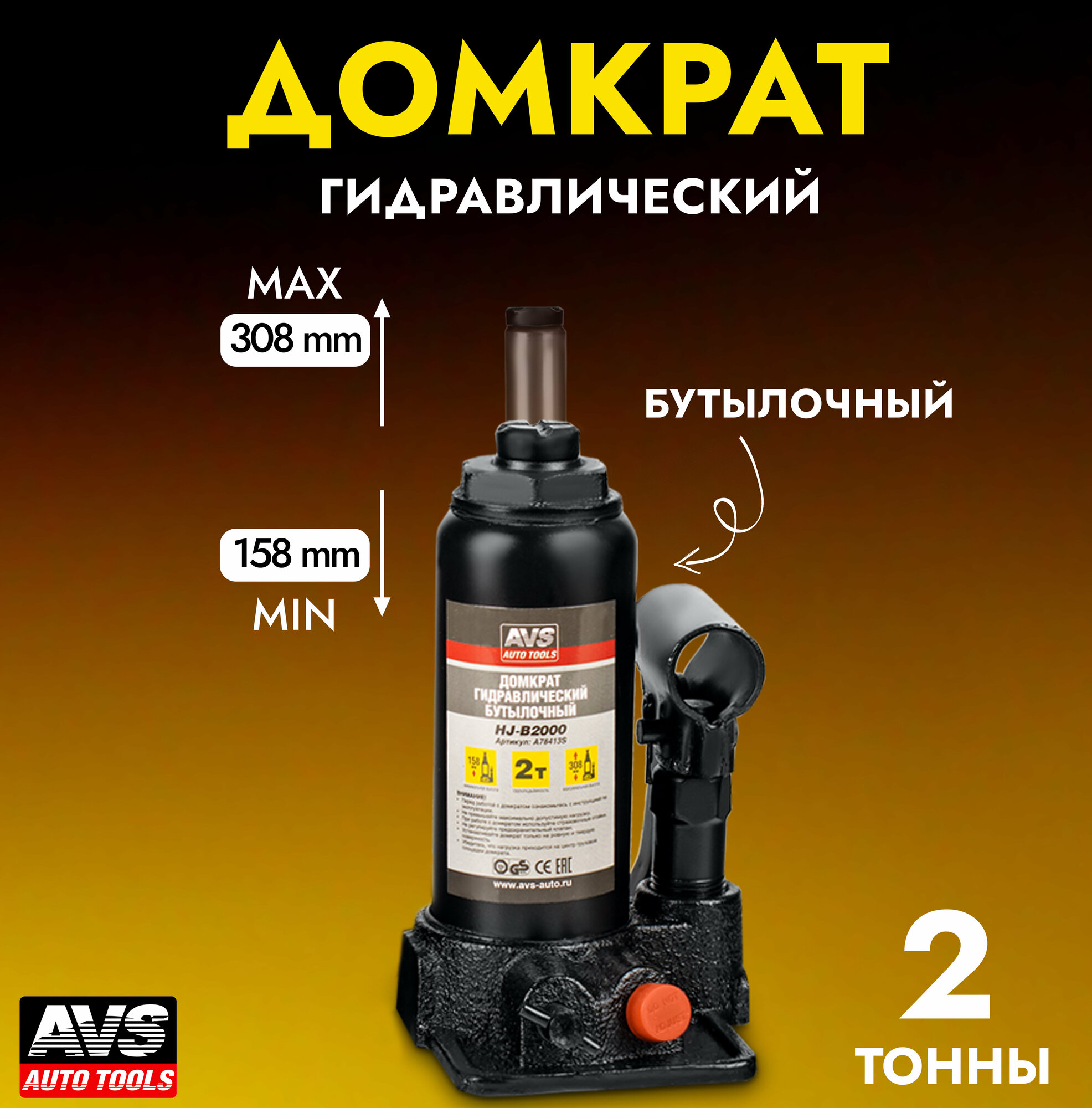 СохранитьДомкрат гидравлический автомобильный (бутылочный) AVS HJ-B2000, 2 тонны, A78413S интересное: